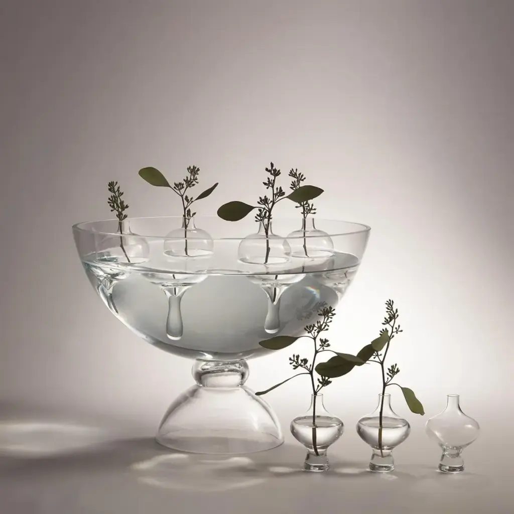 Our Grande Footed Bowl can't help that it always ends up being the center of attention! This clear glass piece was meant for the spotlight! With its grande size and elegant lines, the bowl is perfect alone or when filled with your favorite things. Please note you may see an air bubble in this piece and it is to be expected and is not a defect. From a fashion forward perspective, Global Views offers accessories, furniture, statement lighting, and an assortment of rugs and mirrors to add beauty and joy to your home.