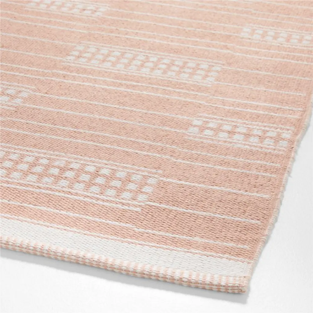 Lay down this striking pink-and-white rug anywhere you need high performance plus modern style. Featuring an on-trend graphic stripe design, this handwoven performance rug defines a space with artistry, dimension and depth. Amazingly durable, the smooth polyester flatweave is a natural fit for the most active, well-loved spaces in your home, from the playroom to the nursery and beyond.Try it on first. Because color representation may vary by screen, using a swatch is an easy way to see exactly how your favorite rugs will look in your home. Our rug swatches ship free and can be returned at any store for a full refund.Order rugs up to 6'x9' online and pick up in a store near you. It's fast, easy and free.For 8'x10' and larger rugs, order online and arrange a convenient warehouse pickup or delivery.