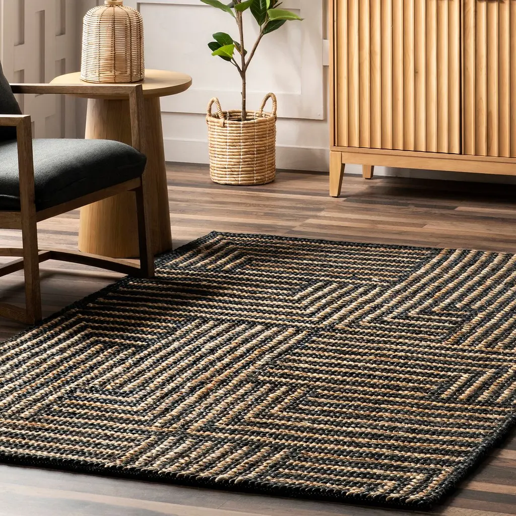 Handcrafted of jute and cotton, this rug is as delightful to walk across as it is to look at. Its large-scale abstract motif brings contemporary cool to the rug's casual, earthy texture. A rug pad is recommended to help prevent slipping.