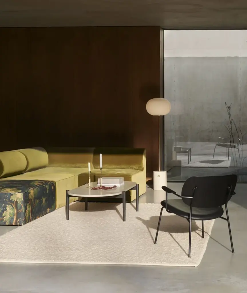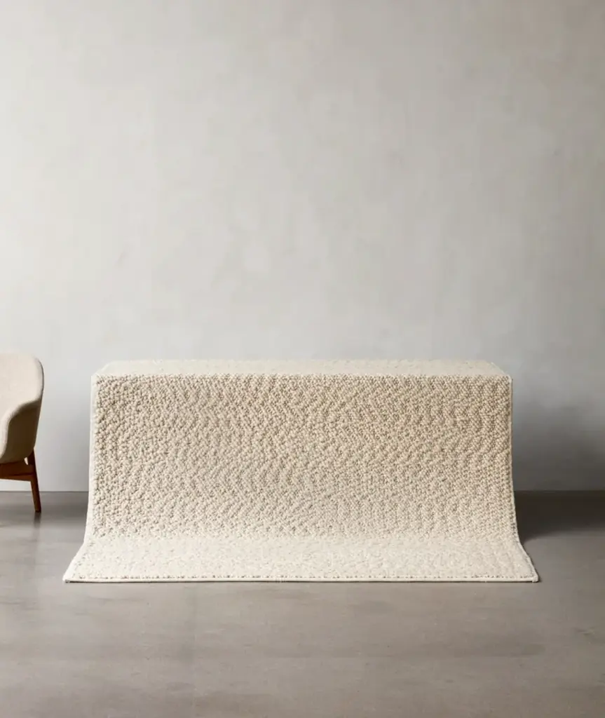 Looking to nature and its endless offerings, the Gravel Rug, designed by Nina Bruun for Audo Copenhagen, represents the values that make a house a home: warm, welcoming and comfortable. Crafted with care from natural wool fibers, up close its soft loops – alternating in size – evoke the feeling of walking on a pebbled beach, but from far away the surface of the rug appears to ripple like a cornfield swaying with the wind. The tactile surface is achieved using a technique whereby tonal wool yarns of varying sizes are looped into tufts. The natural material softens the rug’s overall expression, which will work in any context, from private homes to public spaces.