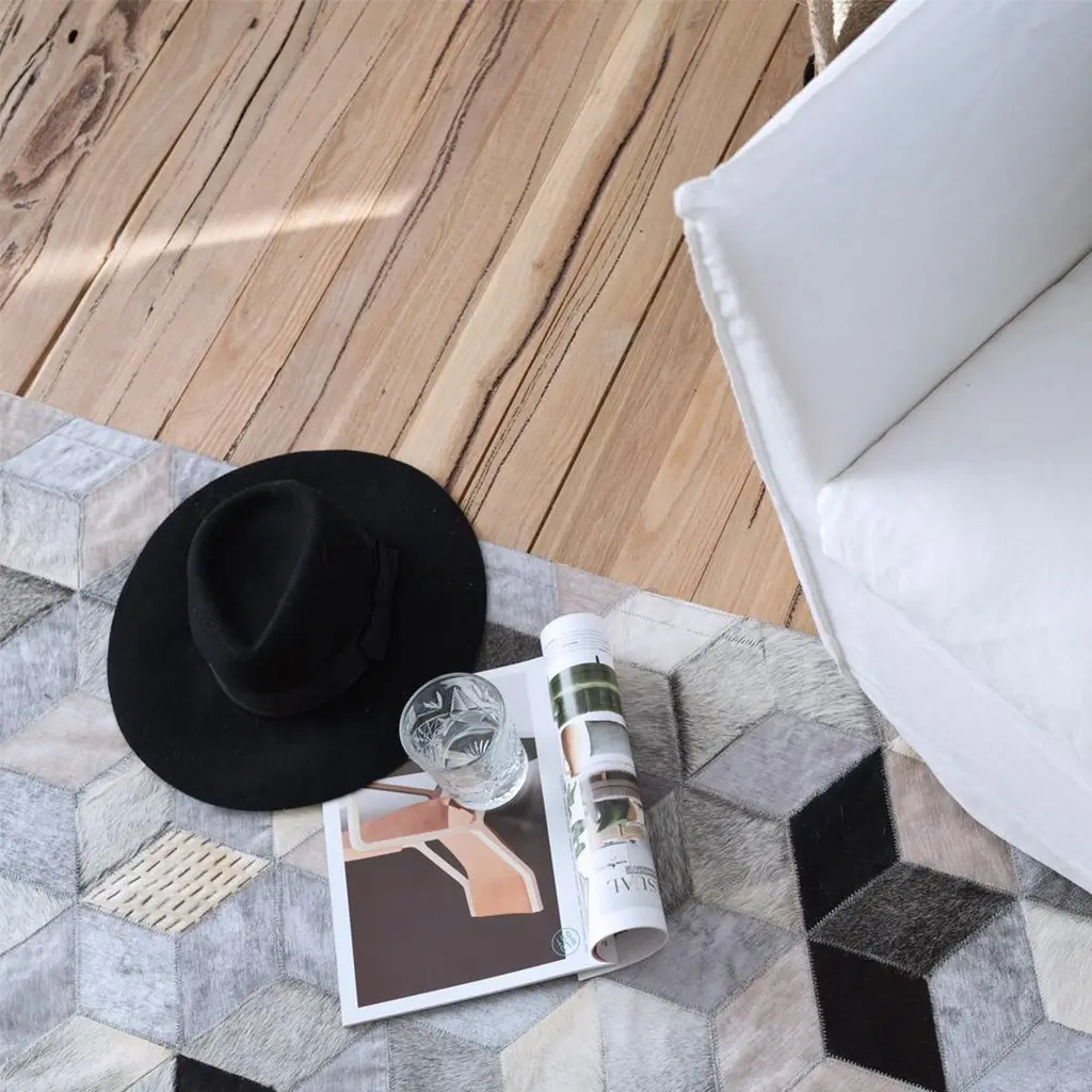 This high impact Dedalo rug artfully blends a mix of natural premium cowhide, including intricate laser burned hide panels, with tonally dyed high-quality viscose.Pops of jet black and finely lasered panels offer stunning visual impact, with a myriad of softer tones pulling together seamlessly these beautiful mixed textiles.The durability and quality remains the same as the regular Art Hide range, and the injection of the lush viscose not only looks striking, but also creates a fabulous price point. Small measures 2 x 1.6m (6’7” x 5’3”). Large measures 2 x 3m (6’7” x 9’8”).This item can easily be customized to any color size or shape upon request.Art Hide rugs are usually made to order. Please allow 4-5 weeks for delivery.