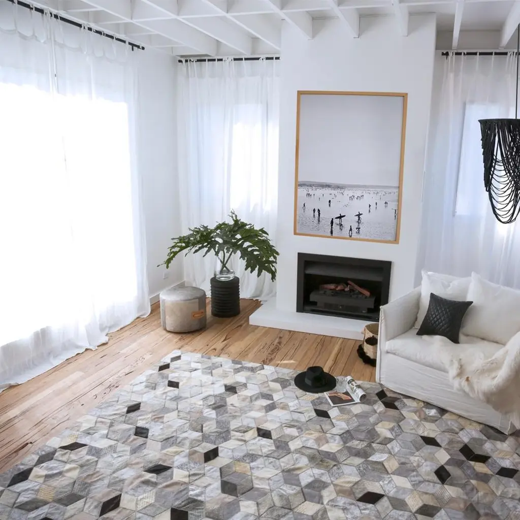 This high impact Dedalo rug artfully blends a mix of natural premium cowhide, including intricate laser burned hide panels, with tonally dyed high-quality viscose.Pops of jet black and finely lasered panels offer stunning visual impact, with a myriad of softer tones pulling together seamlessly these beautiful mixed textiles.The durability and quality remains the same as the regular Art Hide range, and the injection of the lush viscose not only looks striking, but also creates a fabulous price point. Small measures 2 x 1.6m (6’7” x 5’3”). Large measures 2 x 3m (6’7” x 9’8”).This item can easily be customized to any color size or shape upon request.Art Hide rugs are usually made to order. Please allow 4-5 weeks for delivery.