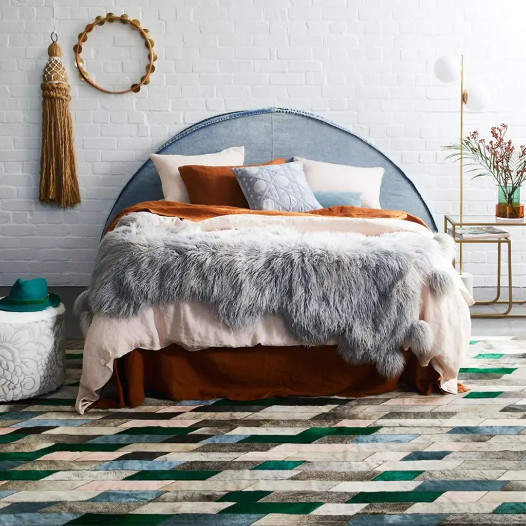 With a touch of timeless retro glam, Art Hide’s Astila skilfully combines luscious natural cowhide tones of natural grey with dyed greys and a bold combined color palette. Its long lines extend the eye and beautiful patchworked tones will inspire the rest of your interiors, with many stunning hues to accent with.The rugs are pieced together using commercial grade nylon thread. It has a ribbon edge finish. Small Measures 2 x 1.6m (6’7” x 5’3”) and Large measures 2 x 3m (6’7” x 9’8”)This item can easily be customized to any color size or shape upon request. Art Hide rugs are usually made to order. Please allow 4-5 weeks for delivery.