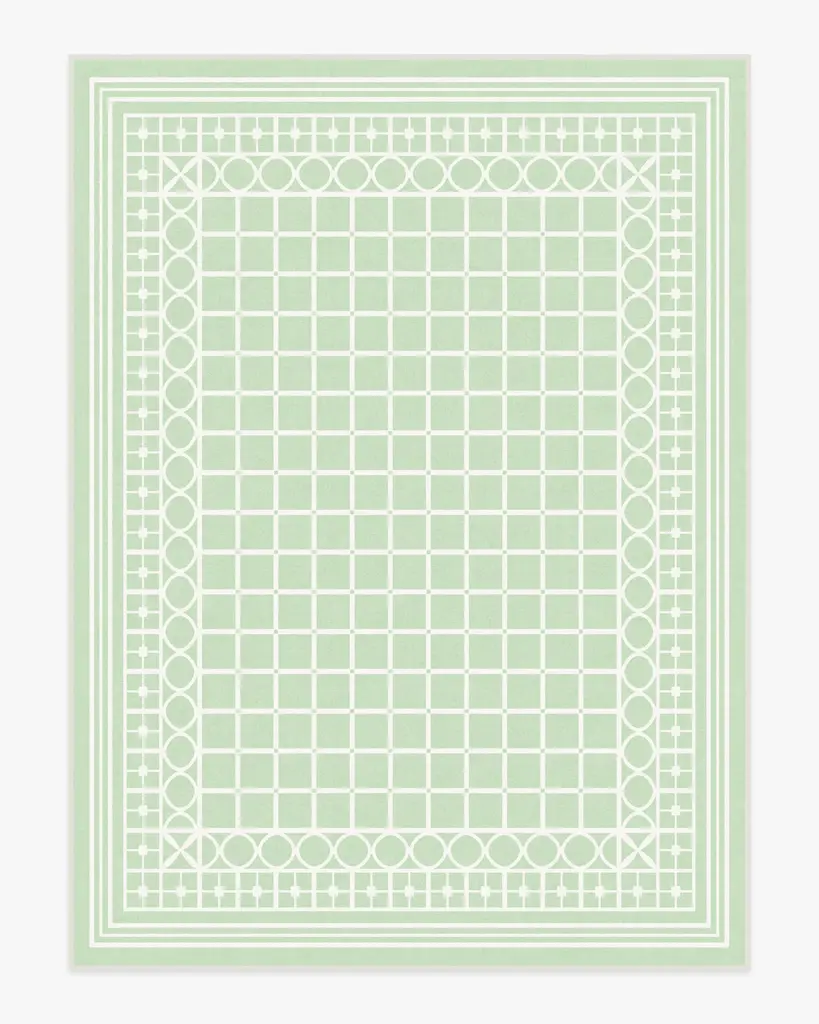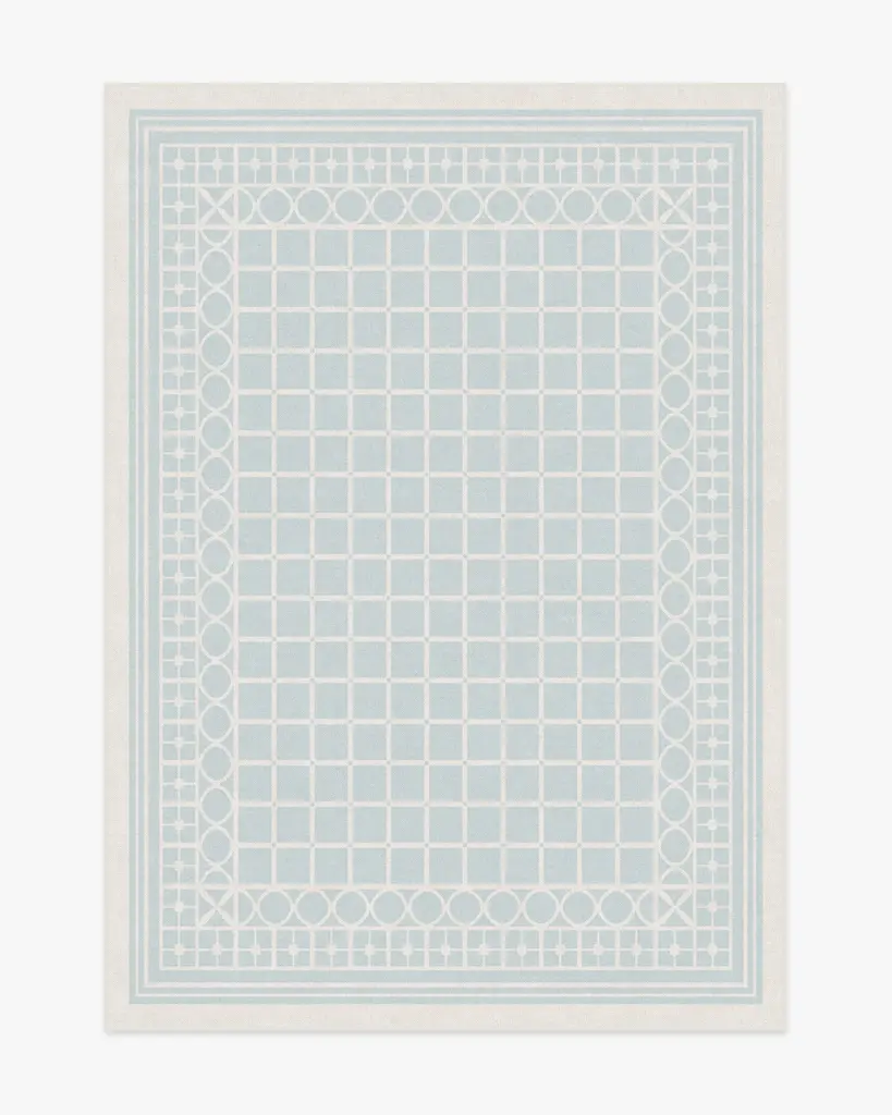 Vacation starts here. Inspired by breeze block patterns in Gray Malin’s coastal photography, the Palm Beach Rug brings seaside sophistication home. A rich navy background and crisp ivory motifs deliver timeless style with a bold, breezy edge. Water-resistant, stain-resistant, and fully machine-washable. Colors may vary by device and lighting.