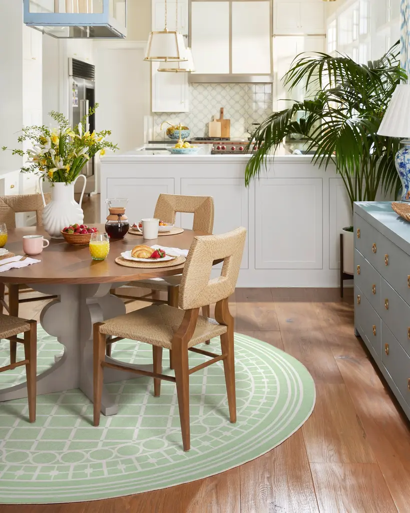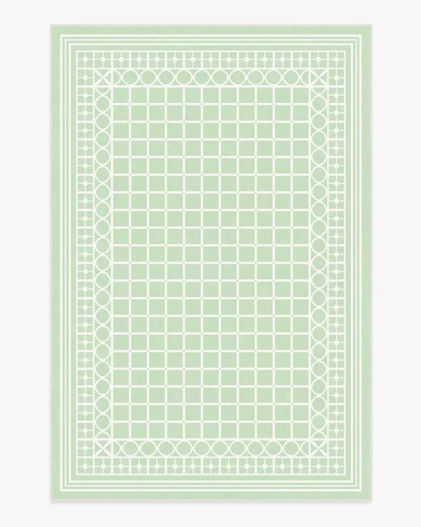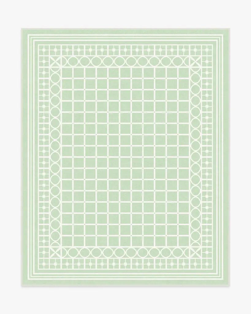 Vacation starts here. With breeze block motifs pulled from Gray Malin’s travel photography, the sage green Palm Beach Rug brings laid-back elegance to your space. Crisp ivory details complete the look for that just-checked-in feeling. Water-resistant, stain-resistant, and fully machine-washable. Colors may vary by device and lighting.