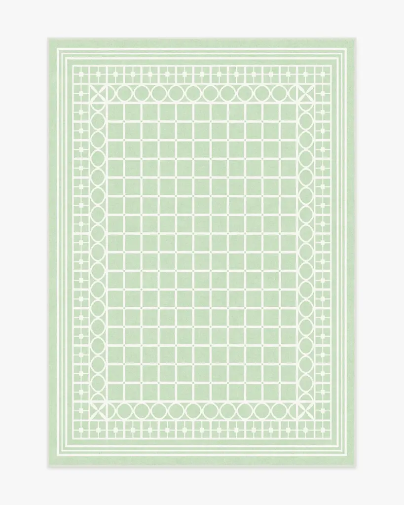 Vacation starts here. With breeze block motifs pulled from Gray Malin’s travel photography, the sage green Palm Beach Rug brings laid-back elegance to your space. Crisp ivory details complete the look for that just-checked-in feeling. Water-resistant, stain-resistant, and fully machine-washable. Colors may vary by device and lighting.