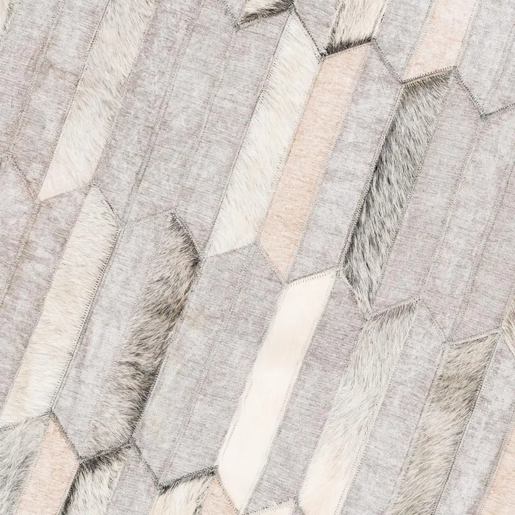 Our stunning new Olio rug is an exciting new development from Art Hide that skilfully blends a mix of grey, light caramel and taupe premium hide with lush grey and beige high-quality viscose.This beautiful, polished combination showcases and highlights the hide while maintaining a great price point.Rugs pads are recommended for the Olio. Small measures 2 x 1.6m (6’7” x 5’3”). Large measures 2 x 3m (6’7” x 9’8”).The rugs are pieced together using commercial grade nylon thread. It has a ribbon edge finish.This item can easily be customized to any color size or shape upon request. Please inquire if of interest.Art Hide rugs are usually made to order. Please allow 4 -5 weeks for delivery.