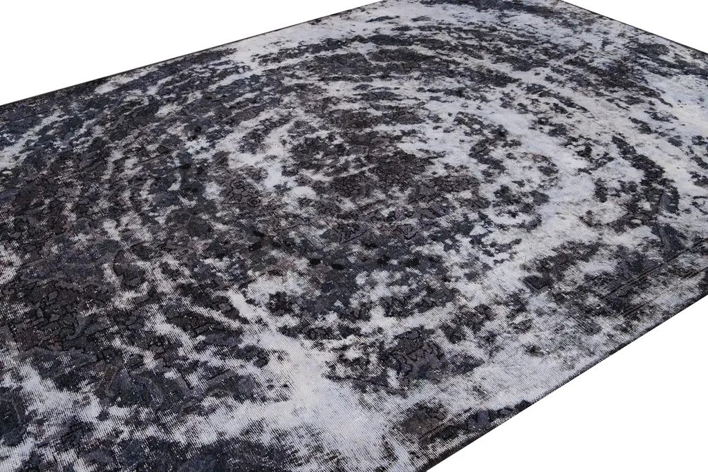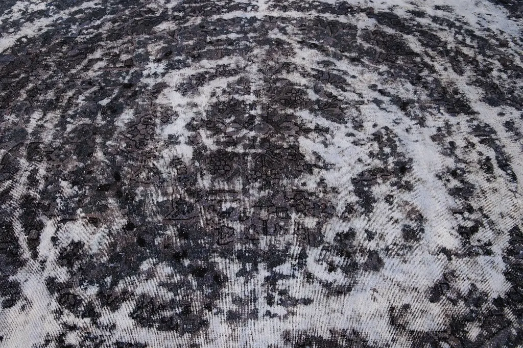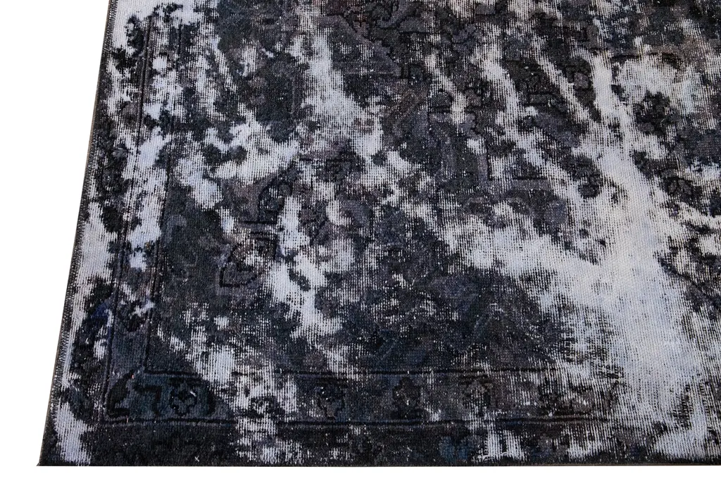 Beautiful Vintage Overdyed Rug with a gray field and black accents with an overall abstract design. This rug measure: 7��������7��� �� 10����10��������������. Our Rugs are professionally cleaned before shipping.