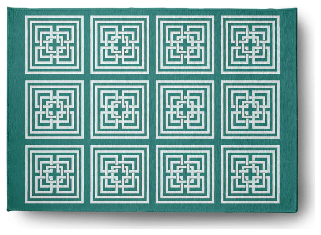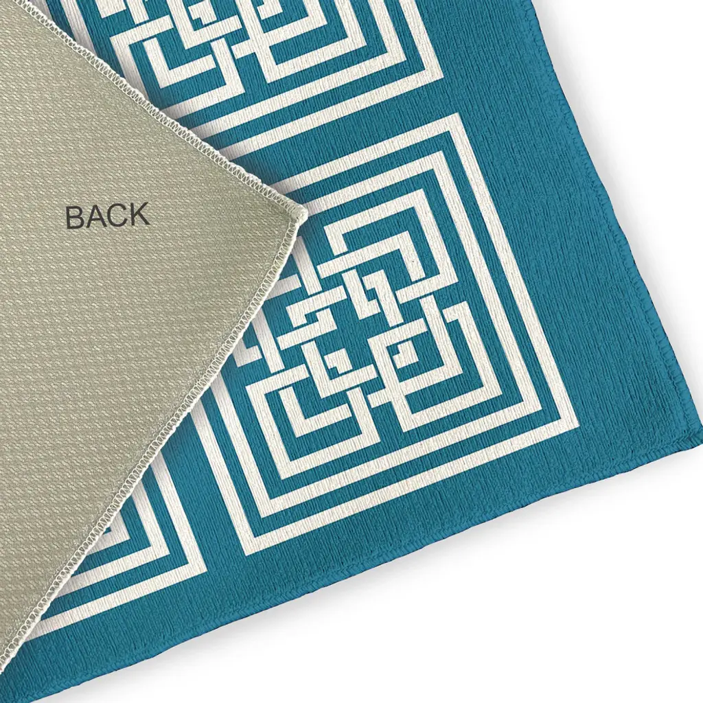 Create a cool coastal environment in your home with a Greek New Key Indoor/outdoor Rug from the Nantucket Collection. Everyone will delight in the space defining design brought to your porch, patio, kitchen, or bathroom by this area rug. The artistic and colorful design is printed on a soft polyester base with a skid resistant backing, making it a perfect way to add color, flare and personality to any indoor or outdoor space. To clean, use a mild soap and lay flat to dry.