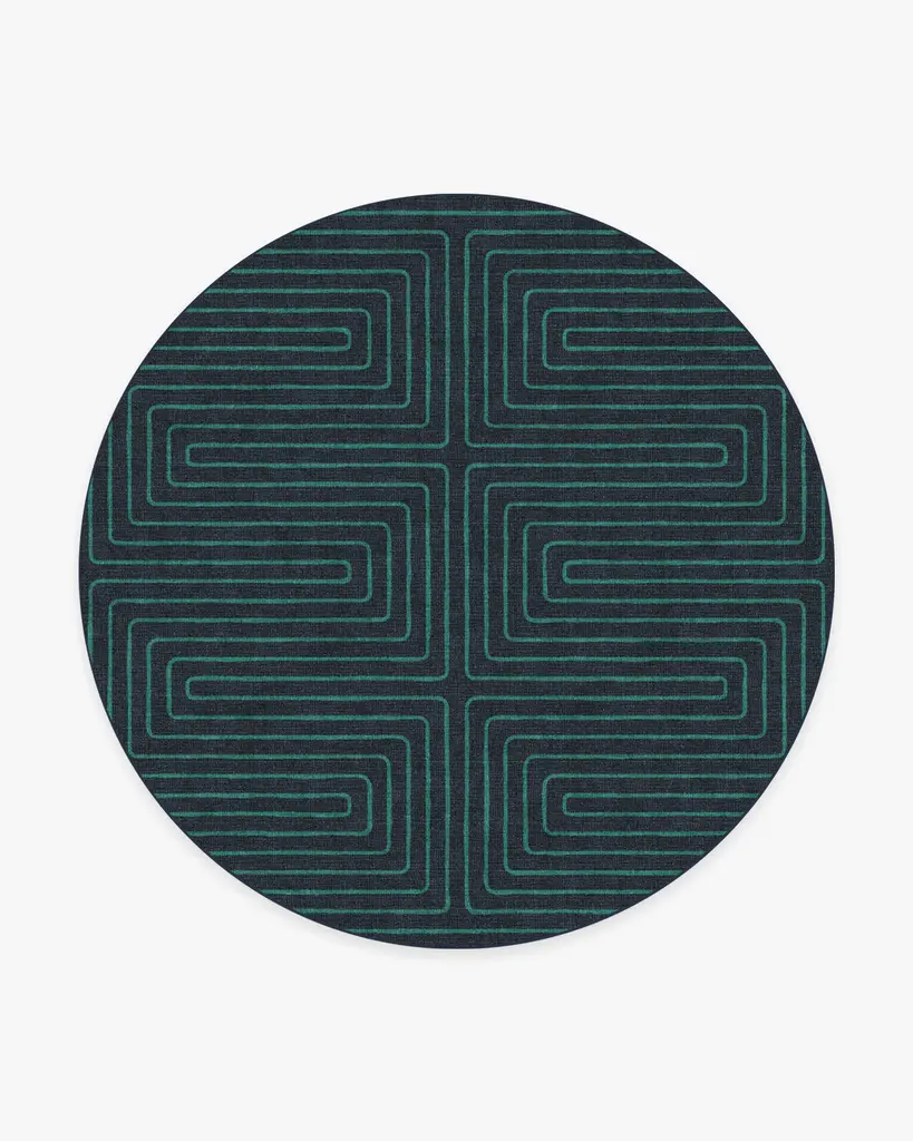 Greek New Key Indoor/outdoor Rug, Unreal Teal, 5' Round