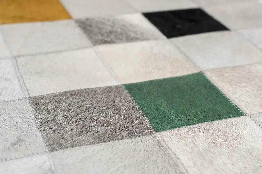 A playful, yet striking new release under our Alta line, the Falling Squares rug will add spades of charisma and sophistication to your interior. The Verde colorway is combined with natural grey shades to create a warm and rich texture on your floor.The Alta range combines smaller tiles and tessellation’s with pops of color, in a combination that delivers on style, but saves on price. Small measures 2 x 1.6m (6’7” x 5’3”). Large measures 2 x 3M (6’7” x 9’8”).This item can easily be customized to any color size or shape upon request.Art Hide rugs are usually made to order. Please allow around 4-5 weeks for delivery.