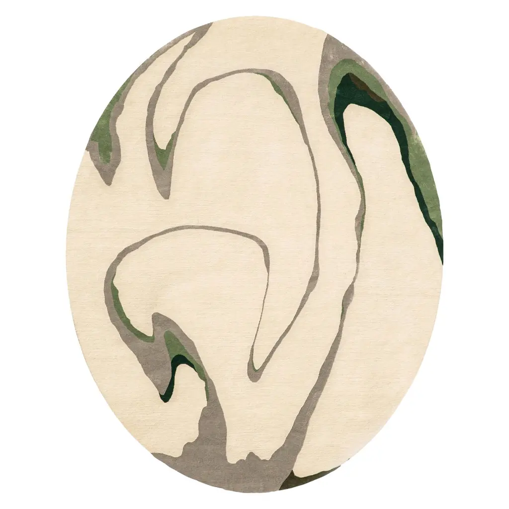 Green Opaque Abstract Oval Shape Hand Tufted Wool Rug Pastel Colours By Rag Home