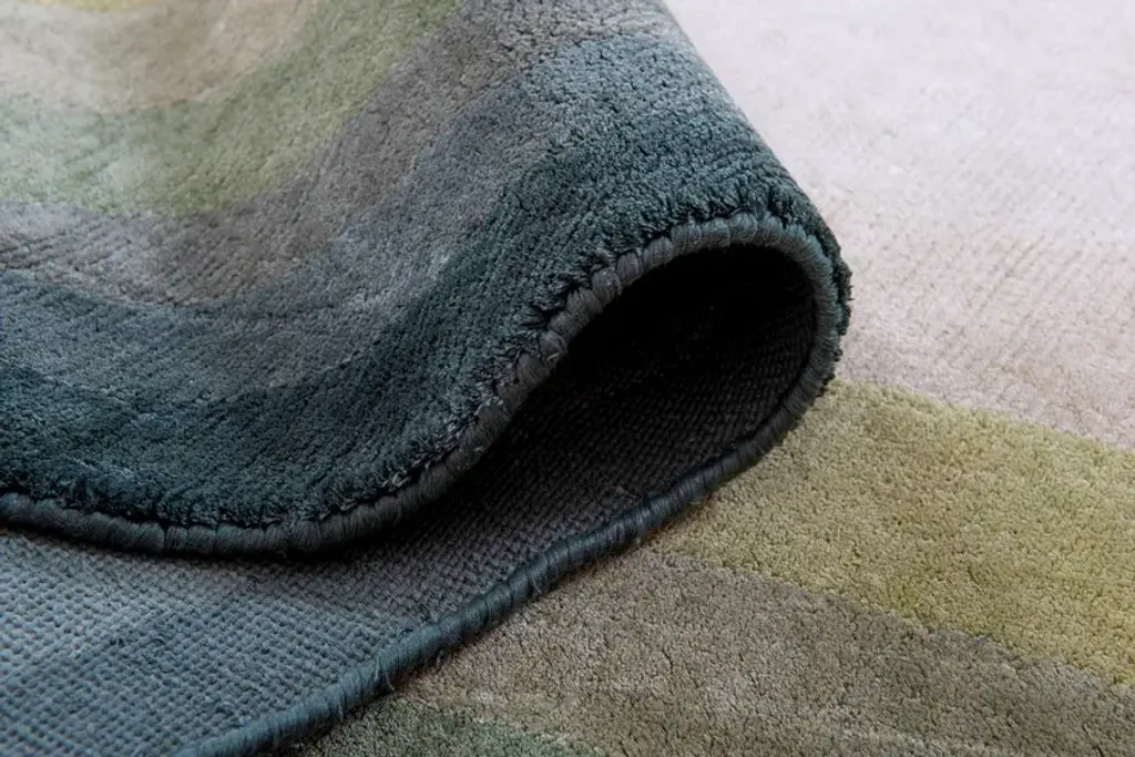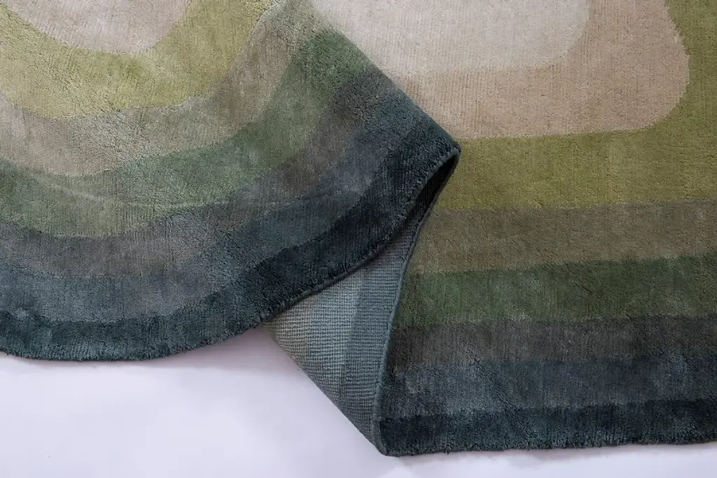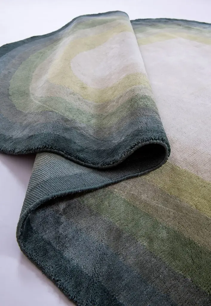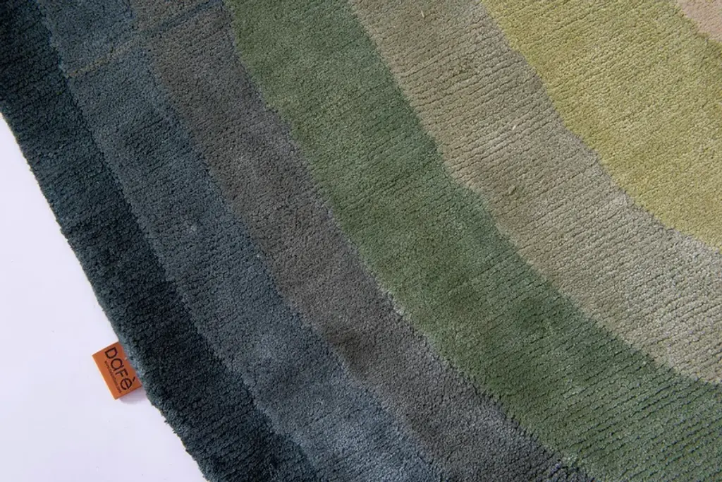 GREEN SWAY is an handmade cotton rug.The name DaFé is taken from a tool used in carpet weaving which is tapped on the carpet to reinforce its knots. The DaFé collection started in 2014 from a study on old weaving methods and patterns. The experience of many generations in the field of carpets weaving and their knowledge of patterns and methods belonging to the various regions where this profitable craft started contributed to the creation of this unique hand-crafted collection. DaFé Collection is the result of a different approach to rugs as complementary parts of the interior environment. Despite appearing as an independent item, it has a strong and substantial harmonizing function. It is a versatile element that contributes to fulfilling a wide range of purposes such as the space’s mood, style and texture. Our work aimes at creating outstanding designs and using techniques of different eras belonging to different cultures and regions, to offer customers a handmade collection with a contemporary taste.Provenance: IndiaManual fabric cutting