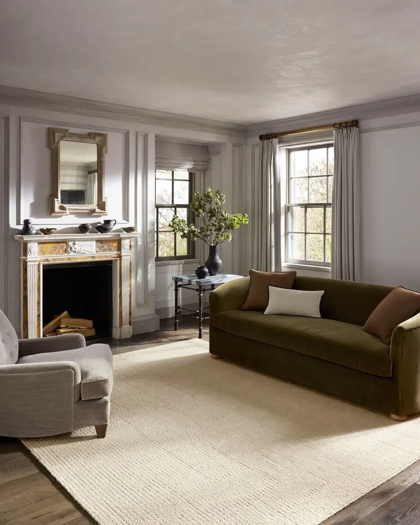 The Greenwich Collection by Jeremiah Brent x Loloi is a beautifully textured solid-toned area rug with subtle pile variation. Jeremiah loves this collection for its rich colors rooted in nature and a blended wool-and-cotton pile that’s softer and more malleable than typical wool. This collection is hand-woven in India and Goodweave-certified, ensuring our commitment to ethical production and the support of weavers’ communities.