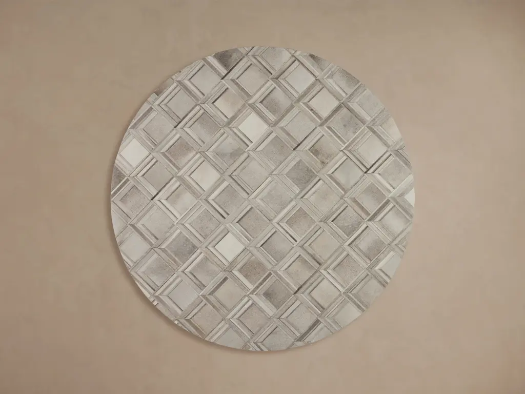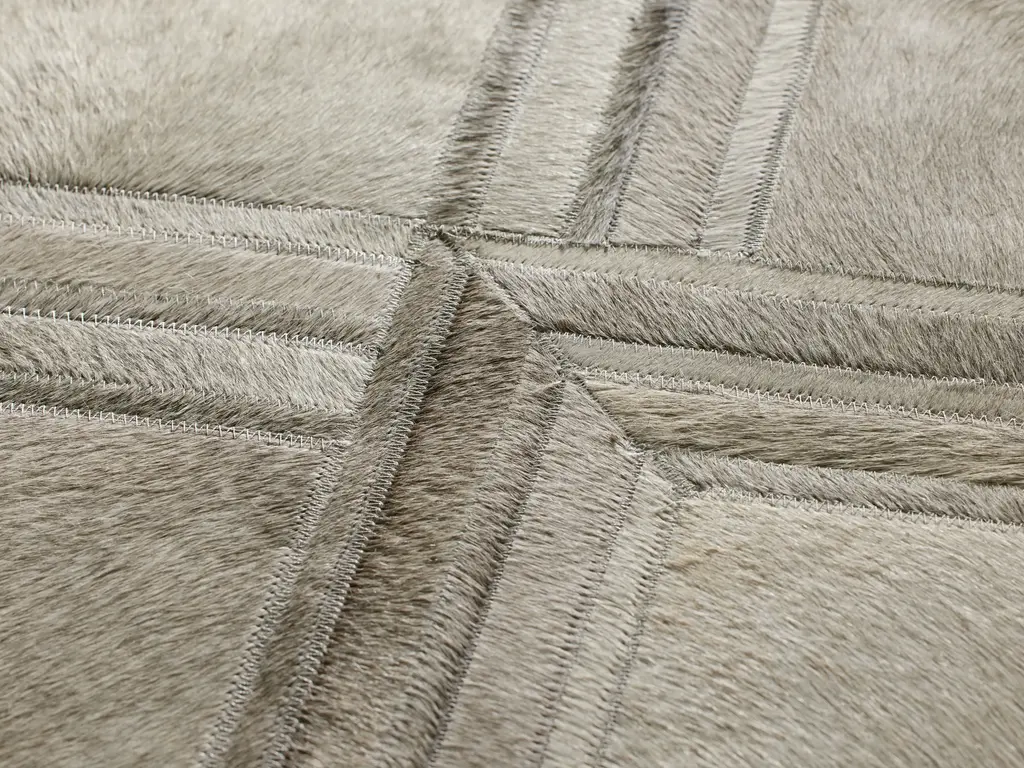 Crafted by artisans from segments of undyed hair on hide carefully selected for their quality and luster, our Greer Rug features a hand-sewn dimensional geometric motif. Unique coloring and markings in the hides accentuate the rug’s striking design and adds one-of-a-kind character.
