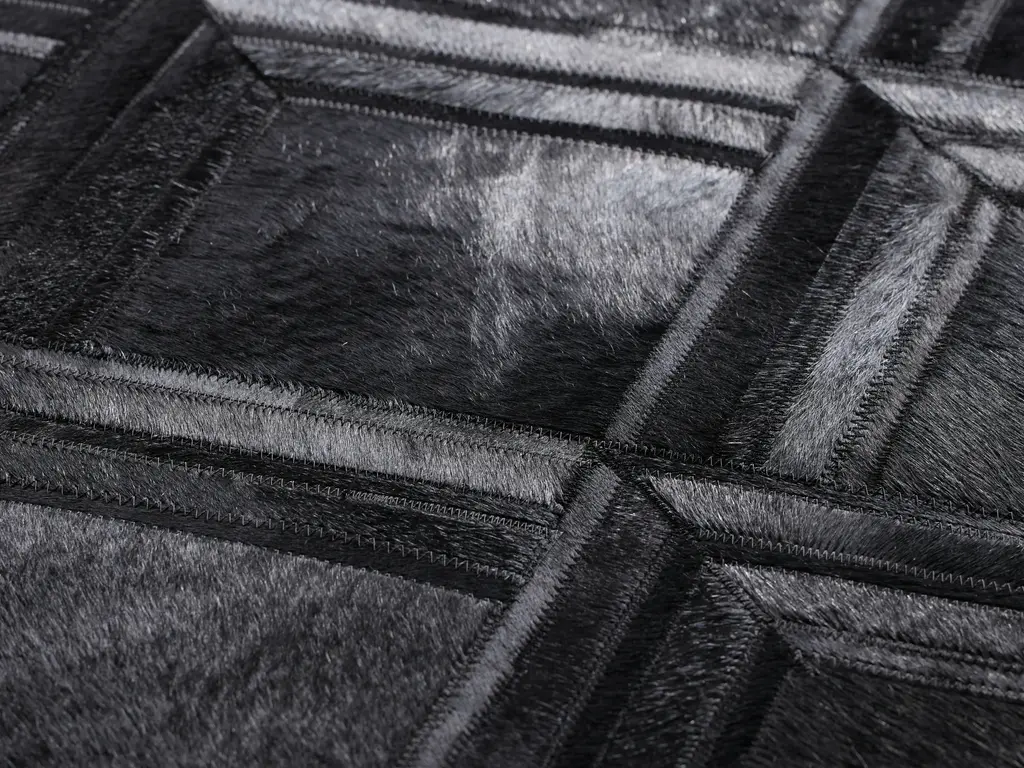 Crafted by artisans from segments of undyed hair on hide carefully selected for their quality and luster, our Greer Rug features a hand-sewn dimensional geometric motif. Unique coloring and markings in the hides accentuate the rug’s striking design and adds one-of-a-kind character.