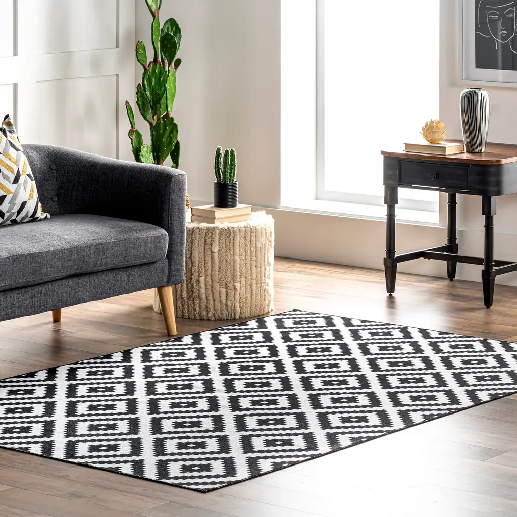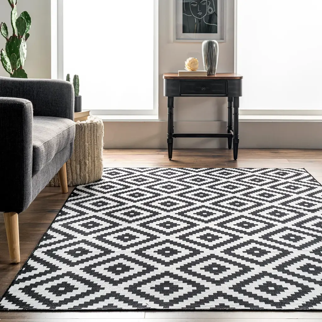 Greta Scandinavia Diamond Washable Rug | Black - 3' X 5'