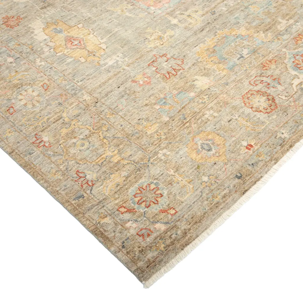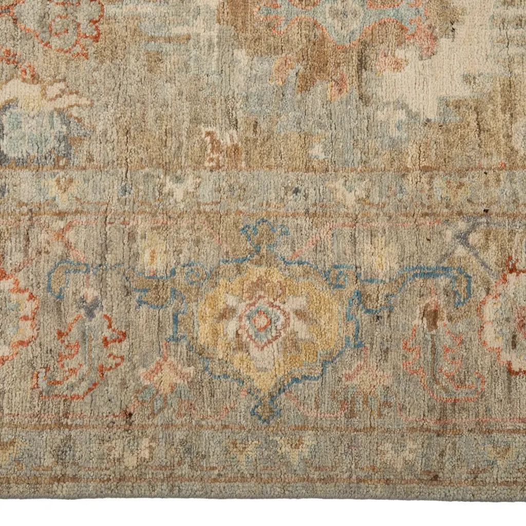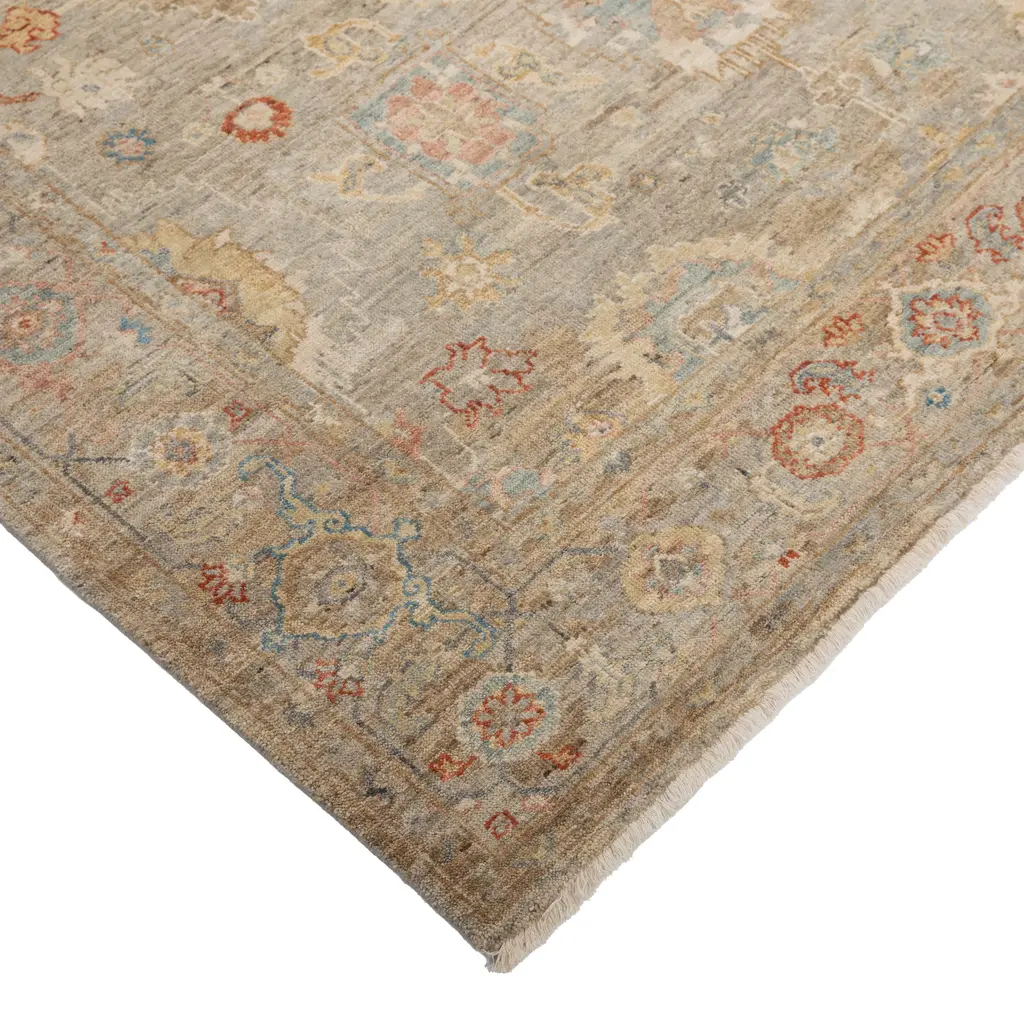 This Grey Antique Revival Wool Rug is a traditional area rug designed for durability and style. Measuring 5'10" x 8'9", this rug provides substantial coverage for various living spaces. It is crafted entirely from wool, a natural fiber known for its resilience, softness underfoot, and inherent stain resistance. The rug features a dominant grey base with an intentionally distressed finish, giving it a timeworn aesthetic. Its traditional pattern includes intricate motifs in complementary colors such as muted terracotta, dusty blue, cream, and beige. These faded hues contribute to the antique revival look, offering the charm of an older piece with the quality of new construction. A distinct border frames the central design, enhancing its classic appeal. Handcrafted in India, this wool rug is suitable for placement in living rooms, dining areas, bedrooms, or studies. Its construction and material make it a practical floor covering that adds texture, warmth, and a sophisticated anchor to both classic and transitional interiors. The detailed yet softened pattern allows it to blend with existing decor while still making a statement.