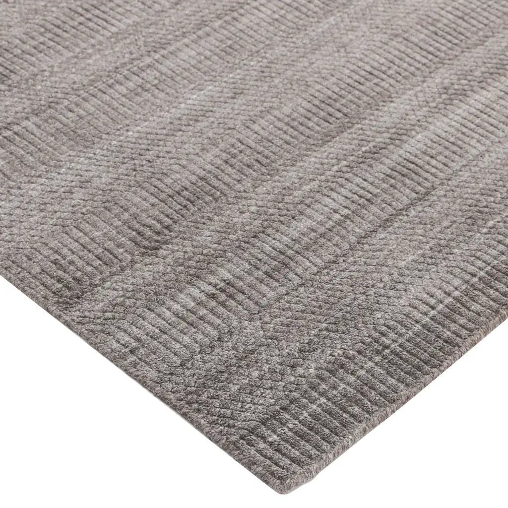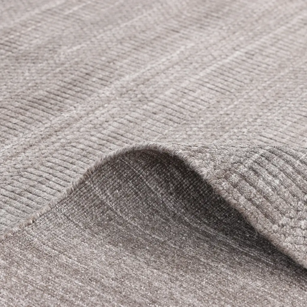 This Grey Solid Art Silk Blend rug is a modern addition to any space. Hand-loomed in India, it features a subtle striped pattern in varying shades of gray for a textured look. Made of high-quality silk blend, this rug is perfect for a contemporary setting.