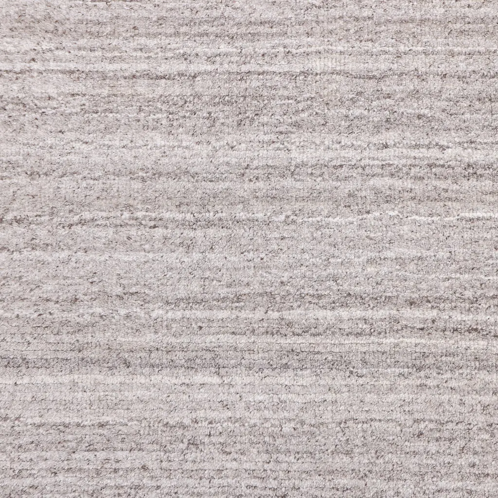 This Grey Solid Wool Art Silk Blend rug from India is a minimalist beauty. Light grey with a subtle stripe pattern, hand knotted for quality. Create a neutral, elegant space with this high end, versatile piece.