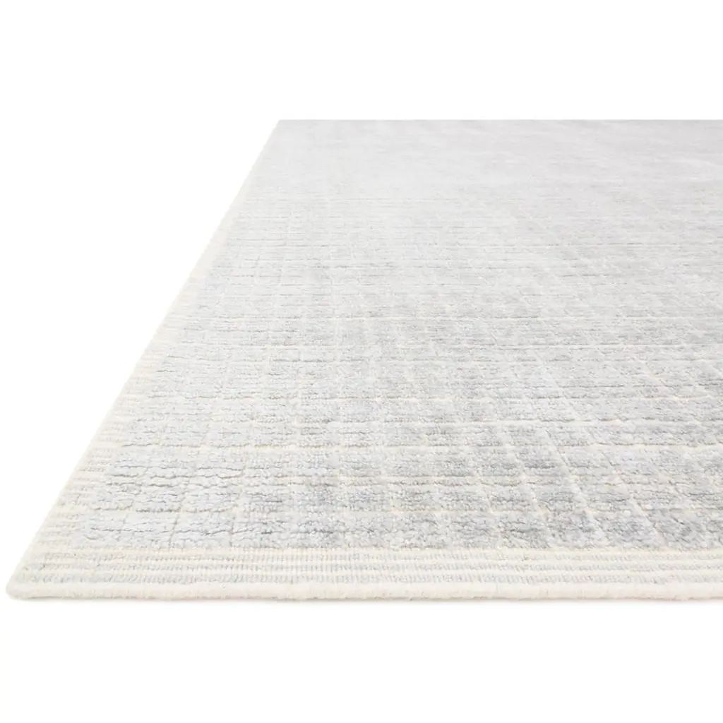 With a subtle geometric grid pattern in shades of silver and ivory, the 5’6”x8’6” Greysen rug embraces a clean, modern aesthetic. Hand-loomed in India from rayon and wool, this classic rug effortlessly complements any room.