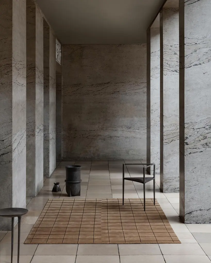 Grid Chestnut/black, Wool Cut Pile Rug