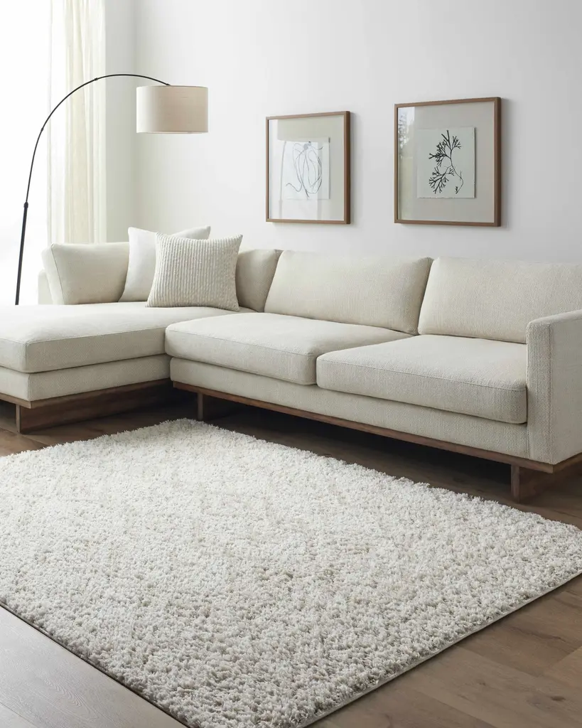 Collection: Grina Colors: White, OffWhite Construction: Machine Woven Material: 100% Polyester Pile: Plush Pile Pile Height: 0.4" Styles: Contemporary Made In: Turkey Thickness: 1.26" Price Range: $$$$$ (Most Affordable)