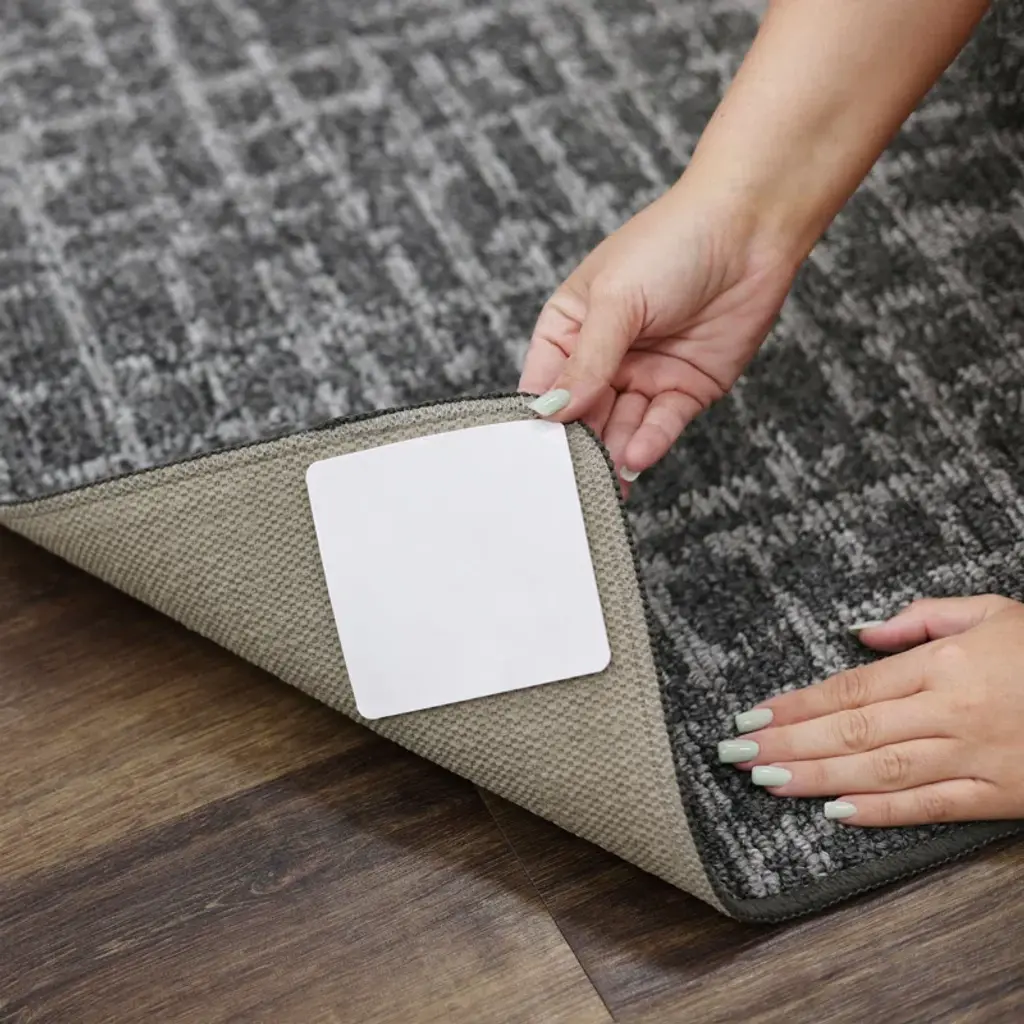 Keep accent and area rugs in place indoors with the simple stuff corner gripper tabs. These non-slip rug gripper tabs are the perfect complement for indoor area rugs on hard surfaces to help prevent slippage, bunching, and wrinkles, without the added bulk from a traditional rug pad. Easy installation makes adding grip to your area rugs or mats a breeze. Simply clean the flooring area, peel the adhesive paper from the tab backing and stick it to the back of the rug or mat, peel the adhesive liner from the other side to stick on the floor, then lay the rug on the floor and press firmly. Add tabs to each of the 4 corners of your rug or more for the perfect amount of grip needed for your floors.