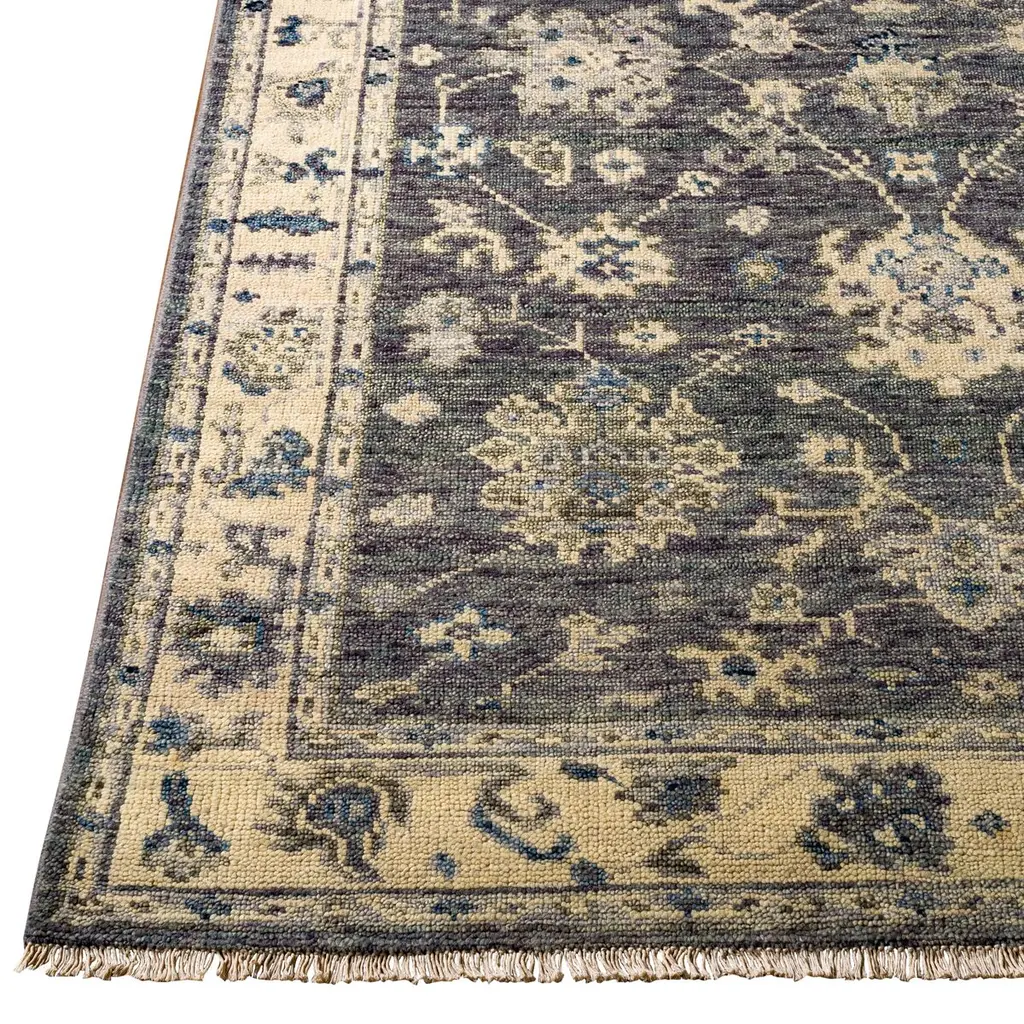 Hand-knotted of New Zealand wool, renowned for its durability and softness, this rug feels as luxurious as it looks. The traditional motif and the half-inch fringe add to its allure. A rug pad is recommended to prevent slipping and extend the life of the rug.