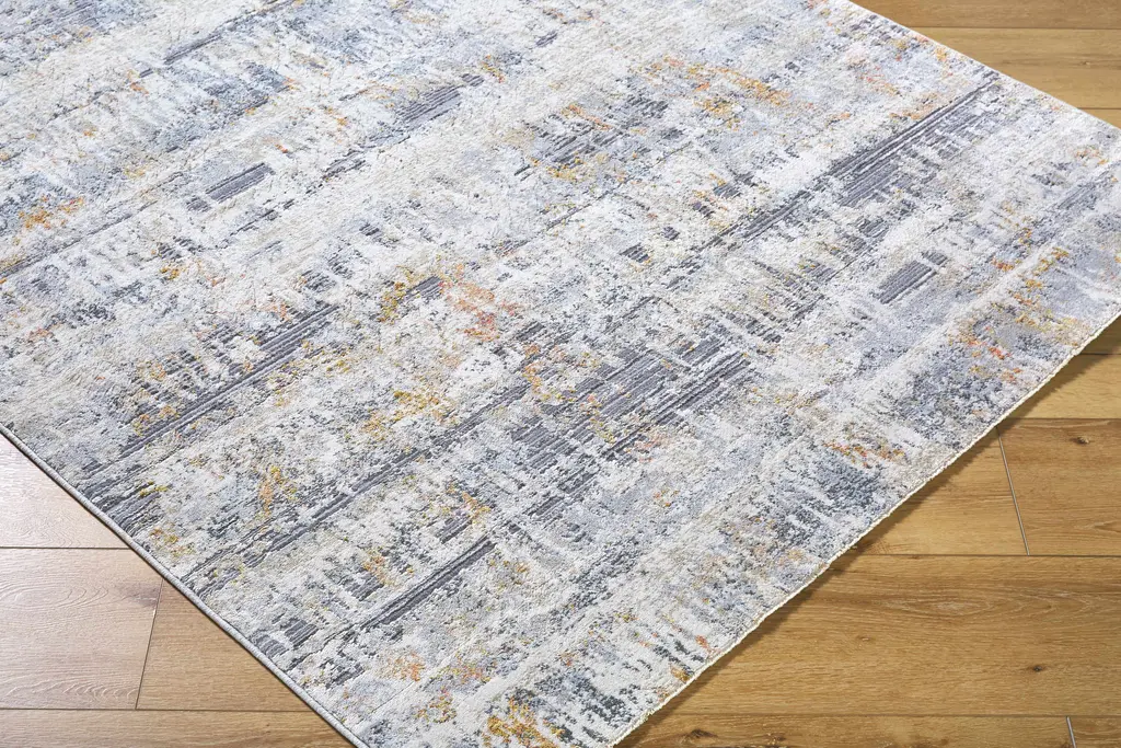 Collection: Guoda Colors: Light Gray, Gray, Medium Brown Construction: Machine Woven Material: 50% Polyester,50% Polypropylene Pile: Medium Pile Pile Height: 0.31" Styles: Contemporary, Abstract Made In: Turkey Thickness: 0.35" Fringe Length: 0.43" Price Range: $$$$$ (Most Affordable)