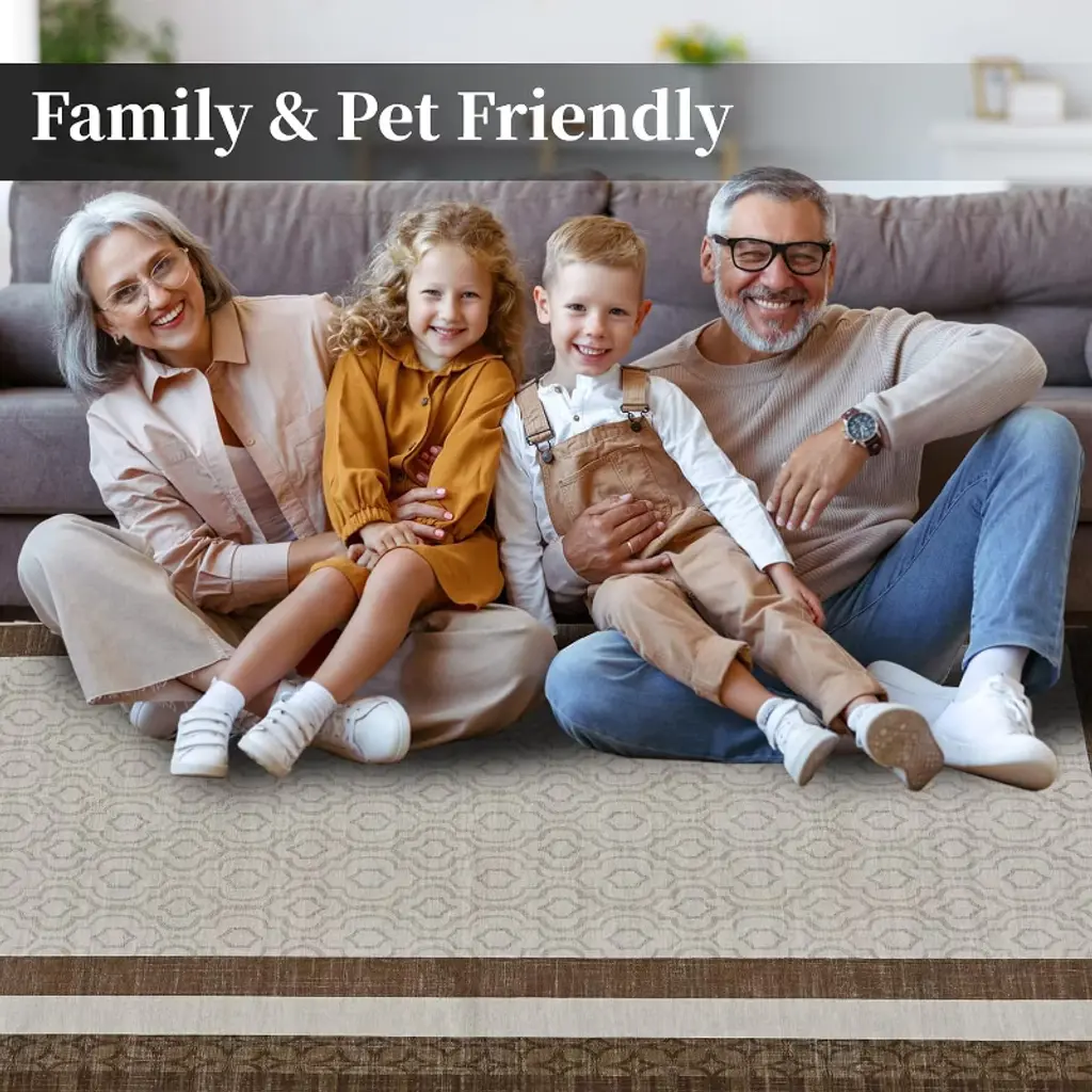 This low-pile area rug features a versatile design for high-traffic home spaces, a secure grip backing to minimize movement and protect floors, and an easy-care polyester construction that is machine washable for simple cleaning. Upon arrival, it requires initial care like gentle smoothing and laying flat for several days to allow any creases to settle naturally for optimal appearance.