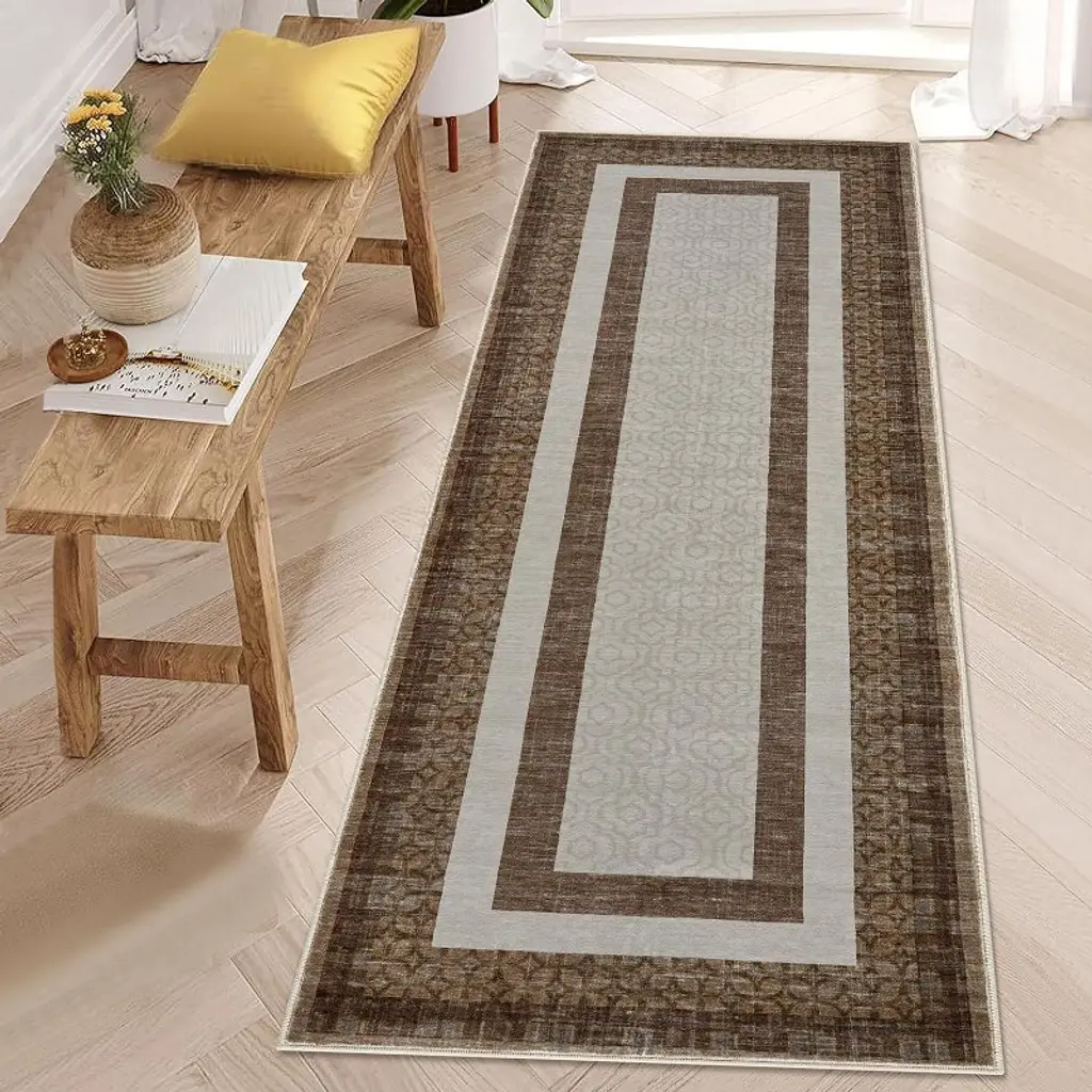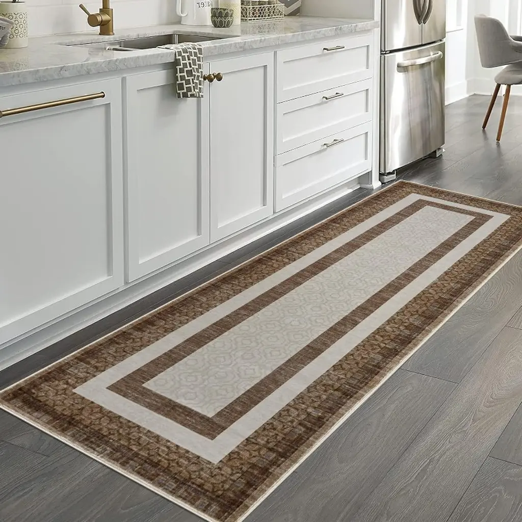 Gustowave 2' X 6' Modern Abstract Non Slip Washable Soft Area Rug For Bedroom Living Room, Brown