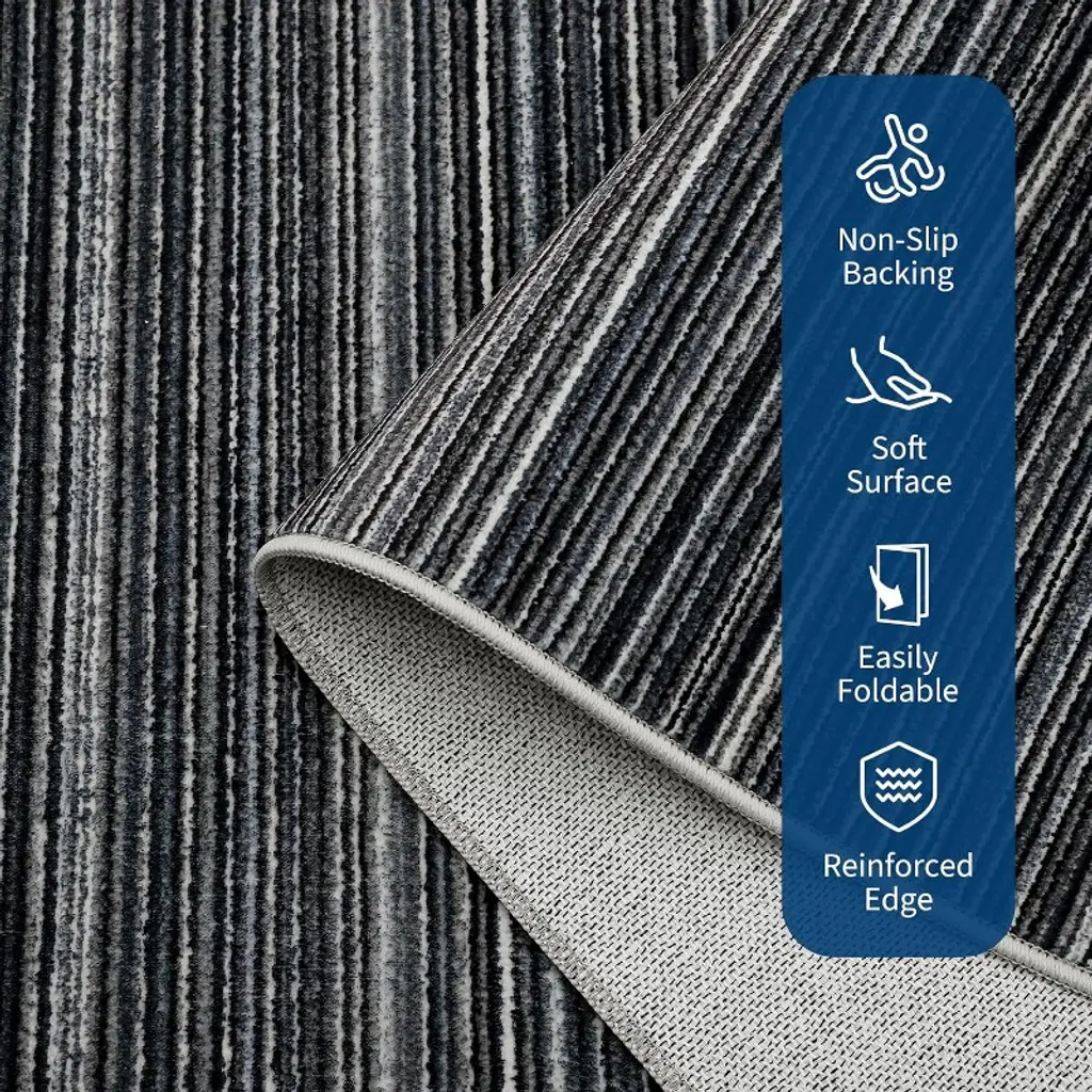 This modern stripe rug features a versatile neutral design that enhances any room with a cozy yet sophisticated atmosphere, while its non-slip backing ensures safety and stability on various floor types for both children and pets. Designed for effortless maintenance, it is washable, vacuum-friendly, and resistant to shedding and fading, making it an ideal and durable accent for active households in spaces like living rooms, bedrooms, and home offices.