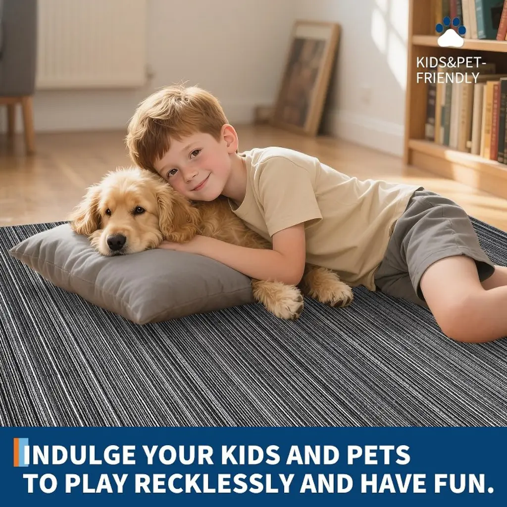 This modern stripe rug features a versatile neutral design that enhances any room with a cozy yet sophisticated atmosphere, while its non-slip backing ensures safety and stability on various floor types for both children and pets. Designed for effortless maintenance, it is washable, vacuum-friendly, and resistant to shedding and fading, making it an ideal and durable accent for active households in spaces like living rooms, bedrooms, and home offices.