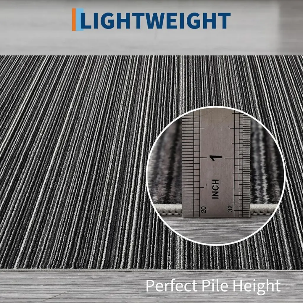 Gustowave 8' X 10' Modern Stripe Machine Washable Area Rug For Bedroom, Living Room, Black