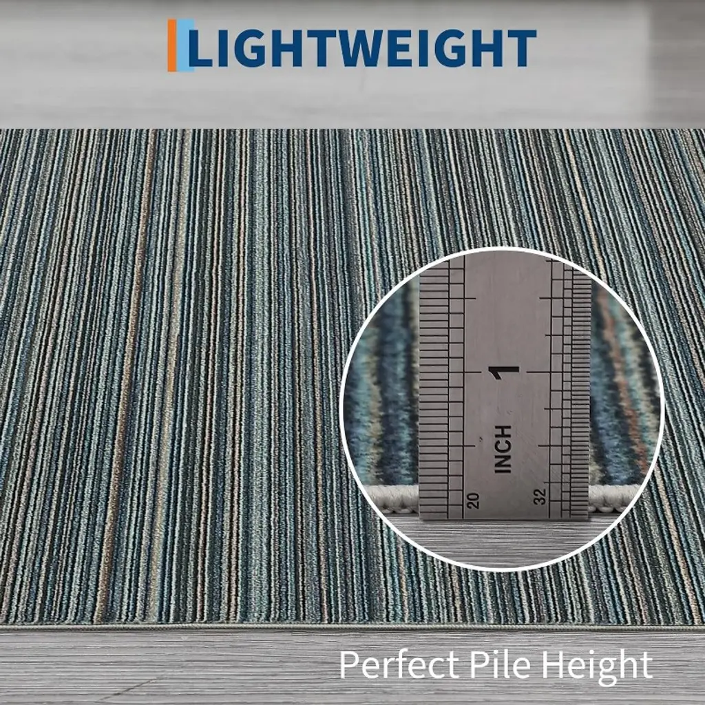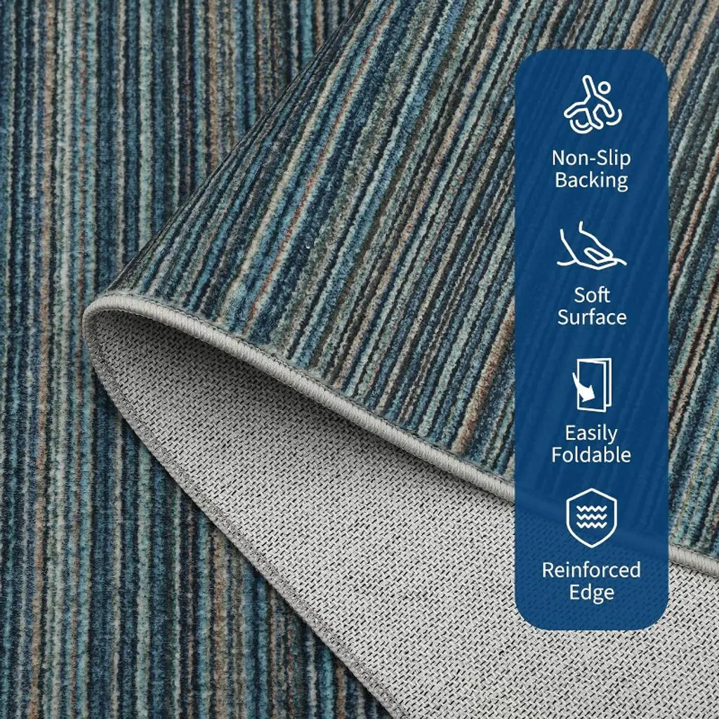 Gustowave 8' X 10' Modern Stripe Machine Washable Area Rug For Bedroom, Living Room, Blue