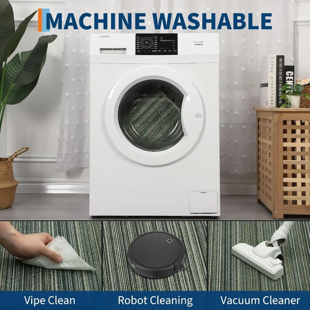 This modern stripe rug features a versatile neutral design that enhances any room with a cozy yet sophisticated atmosphere, while its non-slip backing ensures safety and stability on various floor types for both children and pets. Designed for effortless maintenance, it is washable, vacuum-friendly, and resistant to shedding and fading, making it an ideal and durable accent for active households in spaces like living rooms, bedrooms, and home offices.