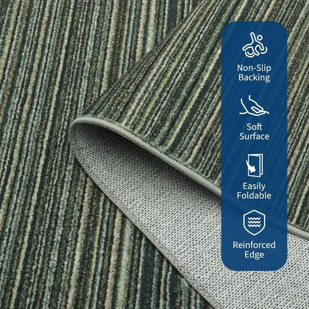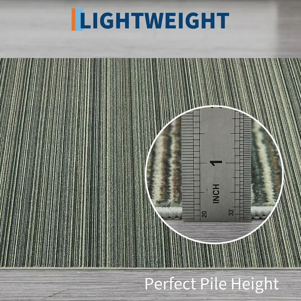 Gustowave 9' X 12' Modern Stripe Machine Washable Area Rug For Bedroom, Living Room, Green