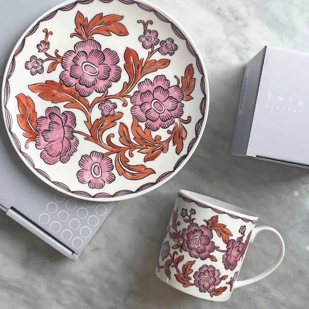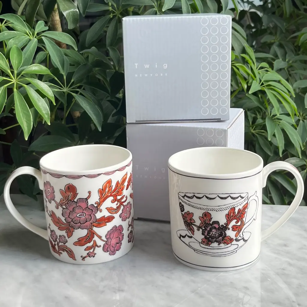 The Heritage Collection in collaboration with Molly Hatch. Inspired by the designs and heritage of 18th century European teacups, this collection features the items most often used in daily life. The most impressive facet of the collection is the vivid colors used. Molly's signature hand-drawn style shines in these lightly raised decals that give a texture to the surface. Modern classics in the Heritage Collection by Twig New York. This is the second version of the mug from this collection. Ideal for Salads and Snacks. One plate per box. Fine Bone China with hand applied detail.Ideal for Coffee or TeaOne mug per boxFine Bone China with hand applied decalMug: 3.25 in. x 3.5 in.Dishwasher & Microwave safeH.Rosa Rugosa Collection