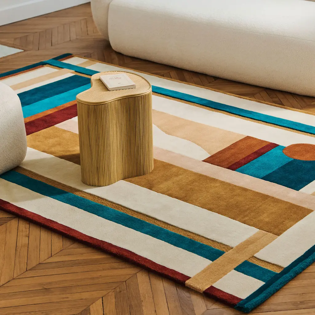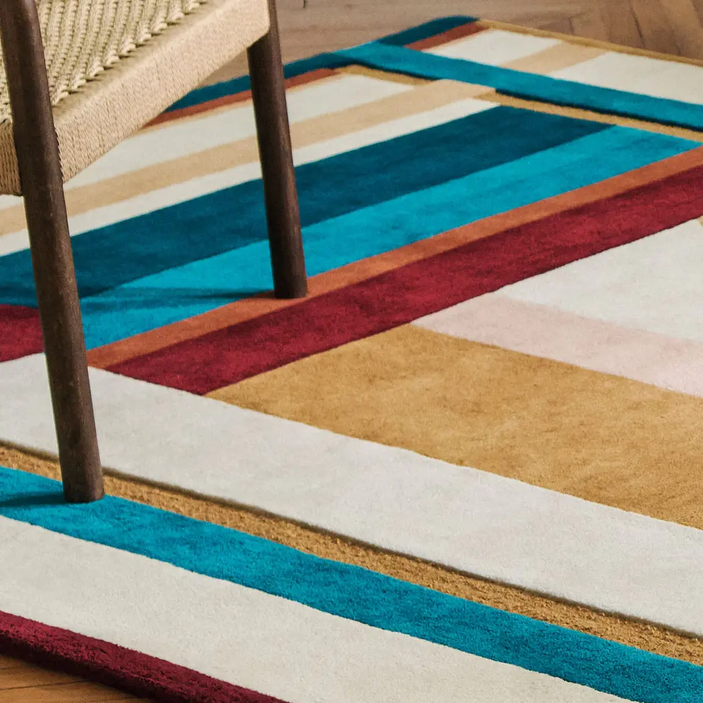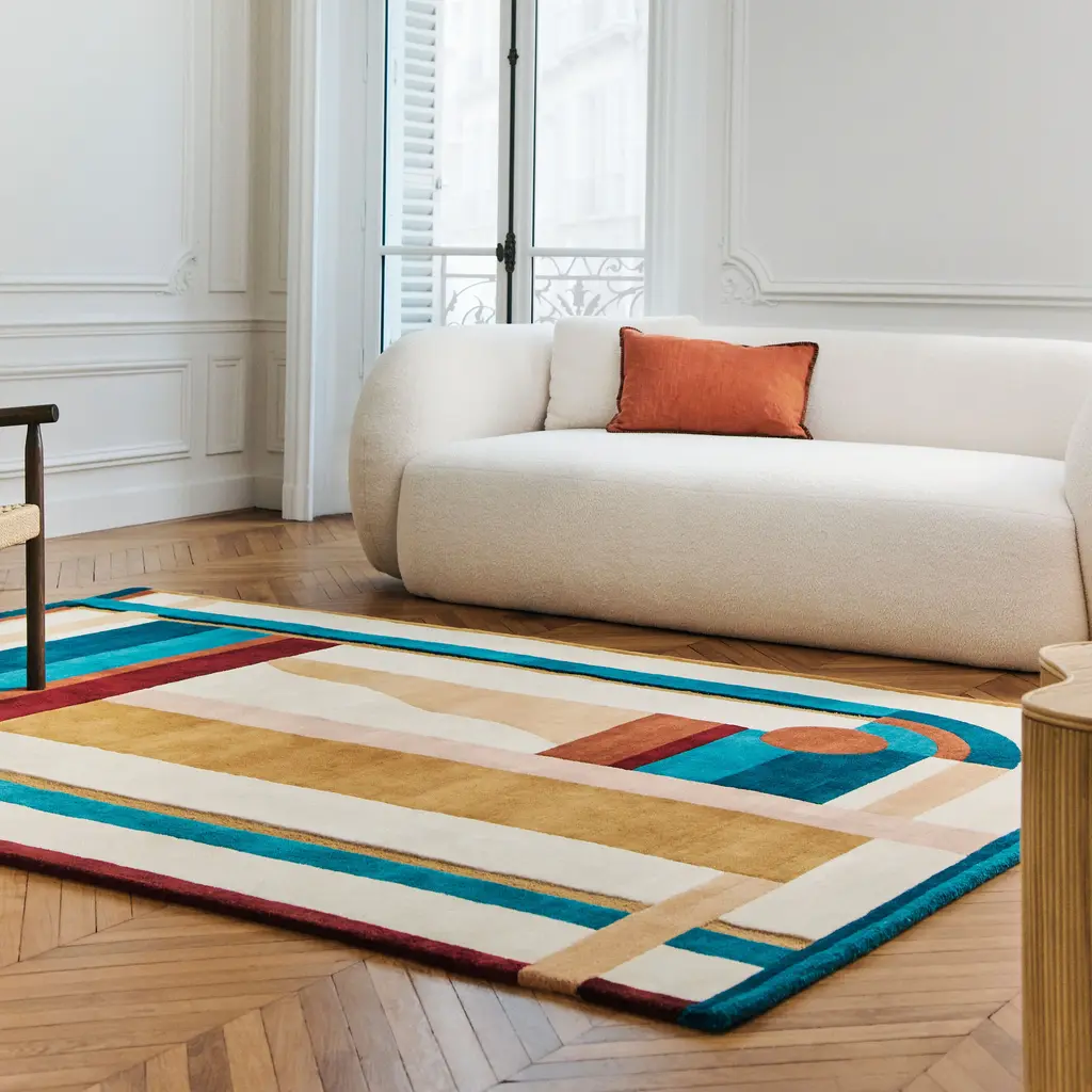 Transform your space into a vibrant oasis with the Hacienda Rug from Toulemonde Bochart. Hand-tufted with New Zealand wool, this rug exudes luxury with its velvety sheen and deep tonalities. Inspired by Mexican culture and the colorful architecture of Luis Barragan, its balanced composition of lines and curves adds a dynamic touch to any room. Highlights