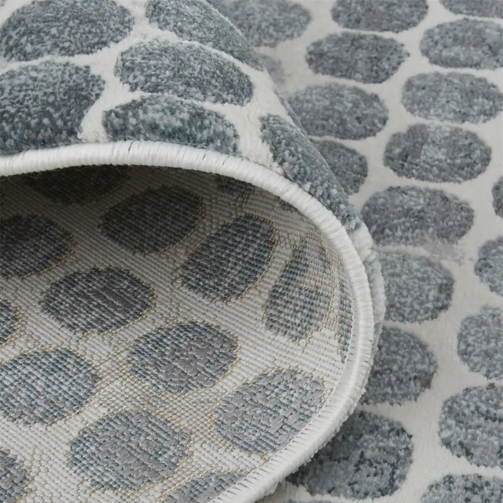 Flashes of pearlescent gray add to the dreamlike beauty of this abstract rug. And because it's made of durable, easy-to-clean polypropylene, you can use it even in high-traffic areas. A rug pad is recommended to help prevent slipping.