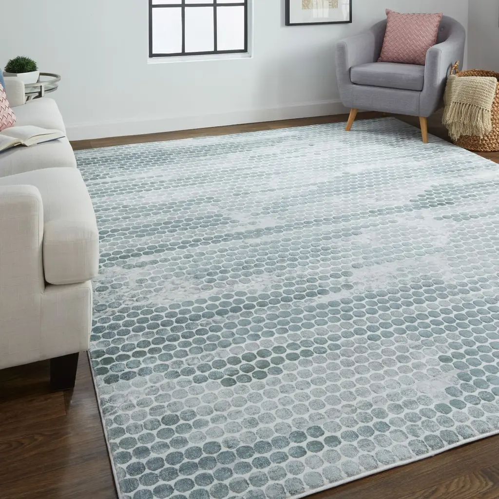 Flashes of pearlescent gray add to the dreamlike beauty of this abstract rug. And because it's made of durable, easy-to-clean polypropylene, you can use it even in high-traffic areas. A rug pad is recommended to help prevent slipping.