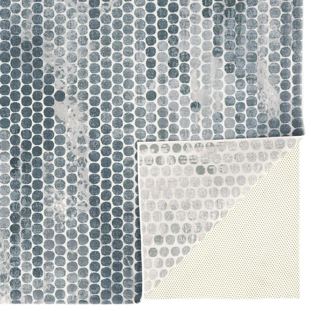 Flashes of pearlescent gray add to the dreamlike beauty of this abstract rug. And because it's made of durable, easy-to-clean polypropylene, you can use it even in high-traffic areas. A rug pad is recommended to help prevent slipping.