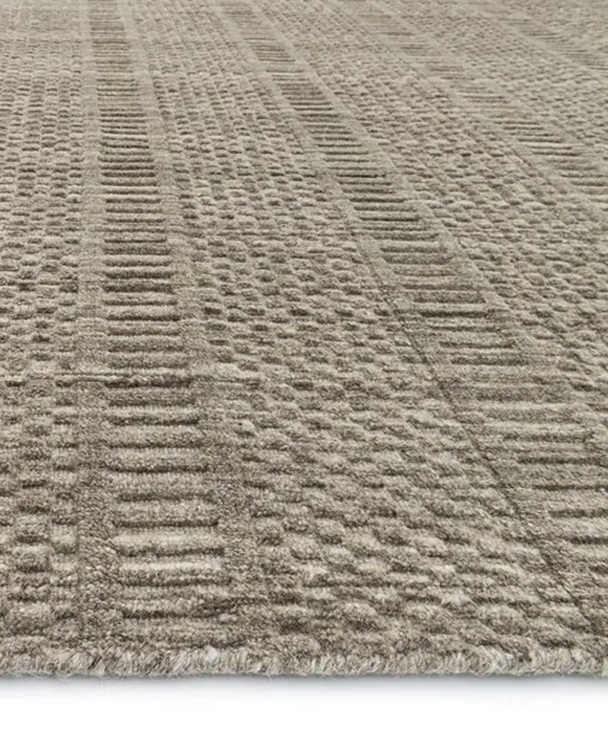 A handwoven, wool blend rug with a unique, textural pattern. This sophisticated wool rug is made from 100% un-dyed wool, and has an understated, textural pattern. Hand-knotted in India, this rug is made using a unique cut pile and loop weaving combination, which creates its distinctive texture. Designed and produced by Loloi, a Texas-based purveyor of high-quality contemporary, rugs that employ time-honored, old world techniques.