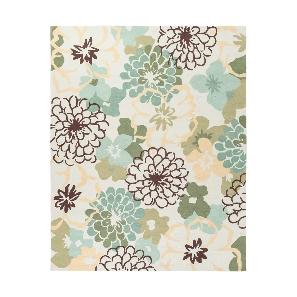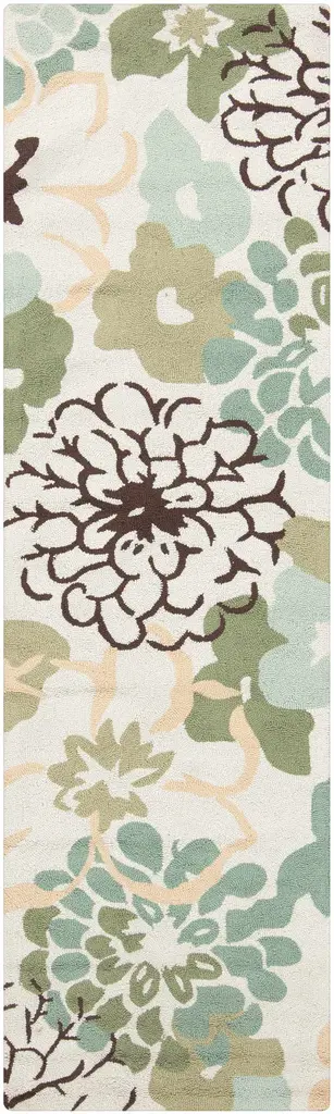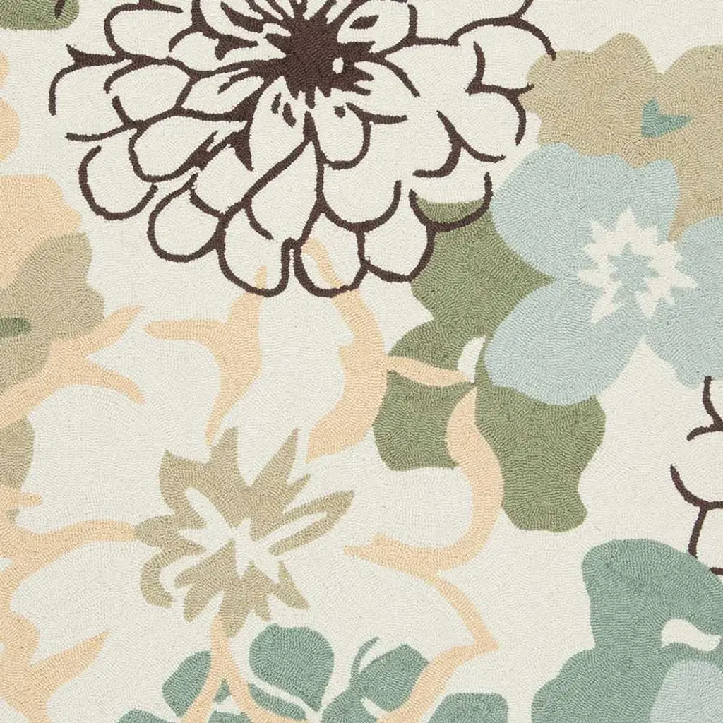 Collection: Hager Colors: Ivory, Pale Blue, Yellow Construction: Hand Hooked Material: 100% Polyester Pile: Medium Pile Pile Height: 0.27" Styles: Transitional Backing: Canvas Made In: China Thickness: 0.42" Price Range: $$$$$ (Most Affordable)