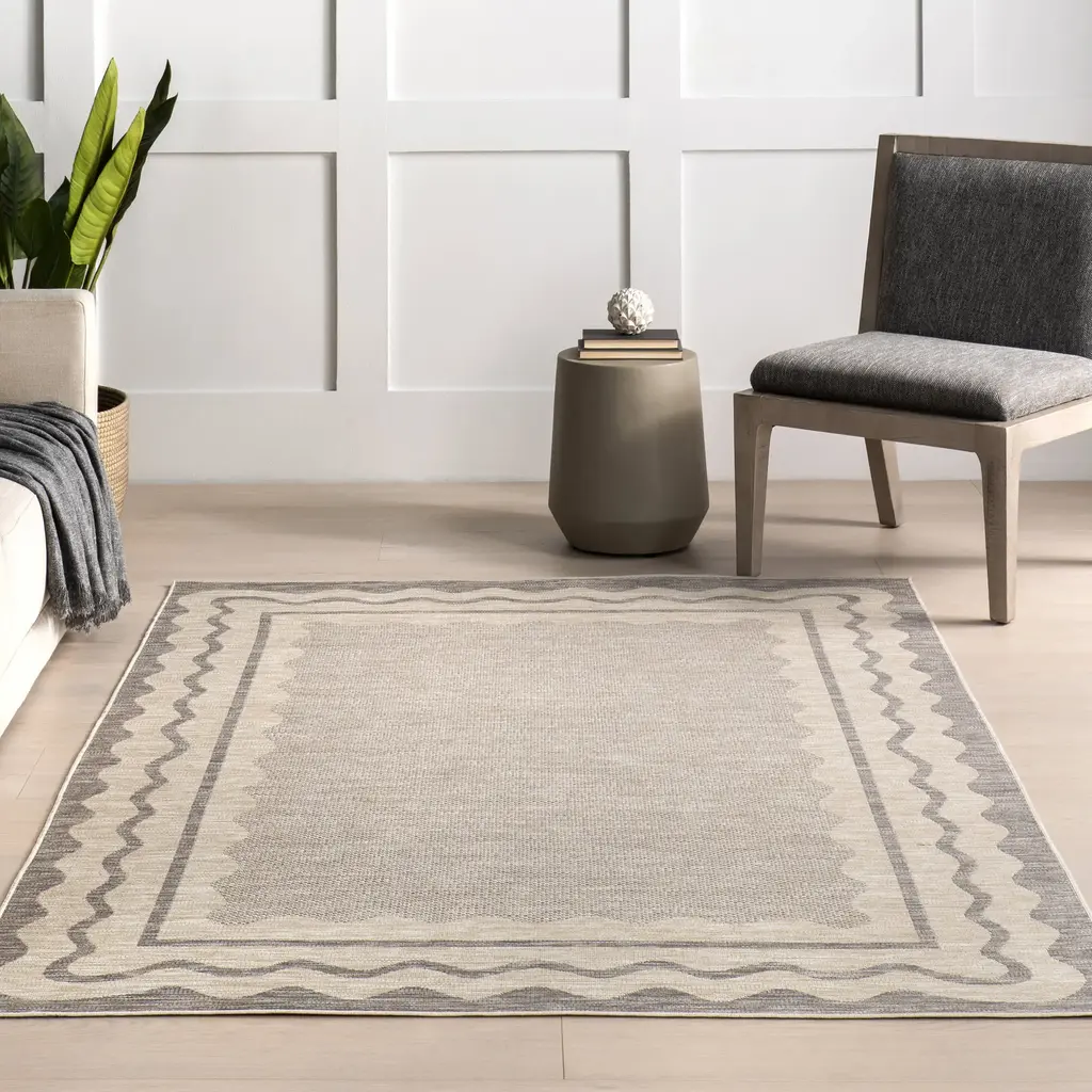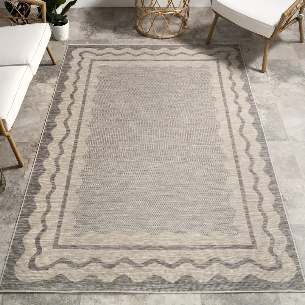 Haisley Wavey Bordered Indoor/outdoor Rug | Light Grey - 4' X 6'