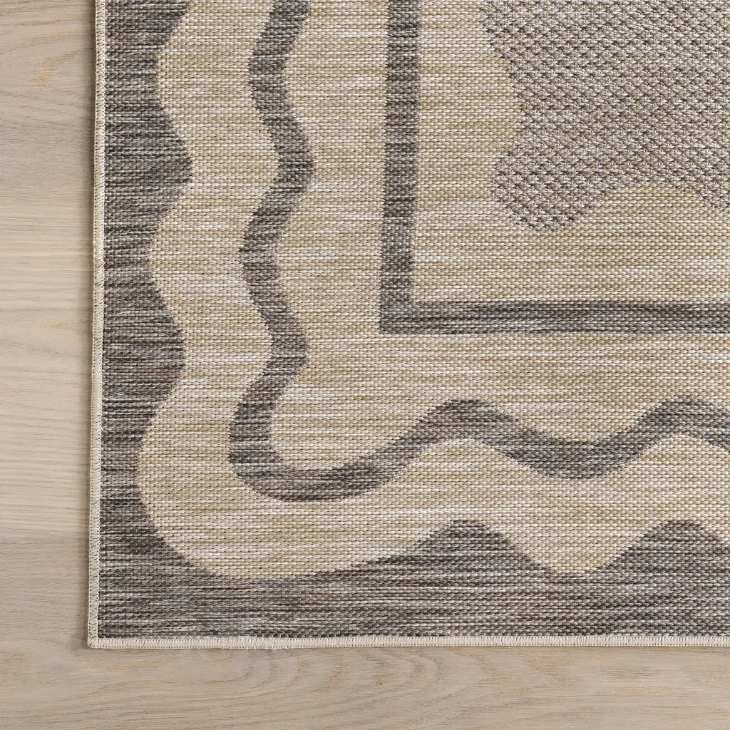 Haisley Wavey Bordered Indoor/outdoor Rug | Light Grey - 5' 3" X 7' 7"