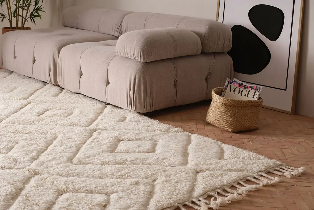 Our Moroccan pieces are each one-of-a-kind. Much of our collection was woven between 30 and 100 years ago, and curated by us. Other rugs in our collection are fresh off the loom and made with traditional techniques. Moroccan rugs don’t come with a key. As with any painting or poem, their motifs have many subjective interpretations. Originally made for personal use, these rugs took months to weave, documenting a shifting tide of events and emotions in the weaver’s life.