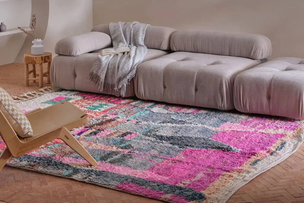 Our Moroccan pieces are each one-of-a-kind. Much of our collection was woven between 30 and 100 years ago, and curated by us. Other rugs in our collection are fresh off the loom and made with traditional techniques. Moroccan rugs don’t come with a key. As with any painting or poem, their motifs have many subjective interpretations. Originally made for personal use, these rugs took months to weave, documenting a shifting tide of events and emotions in the weaver’s life.