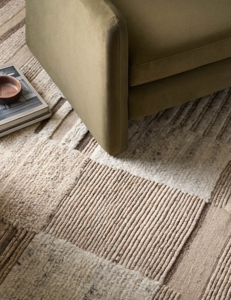 The Halsa rug pairs Art Deco curves with plush hand-knotted wool to offer bold pattern with a modern touch. The mixed-pile design lays rich texture underfoot, perfect for anchoring a living room or adding warmth to a bedroom edit. This wool rug brings understated impact to softly styled spaces.